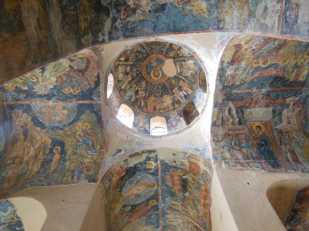 Lacking the splendor of Late Antique gilt mosaic (which the despots could no longer afford), the frescoes compensate with a surprising vitality. Unlike the static, iconic figures of earlier art, one has a sense here that the artists were working and thinking with living models. Genuine realism was not the goal; but the effect is something like Giotto’s Arena Chapel –of something new emerging gradually in a traditional mold. One wonders how this tradition would have developed had the Ottoman conquest not cut it short.