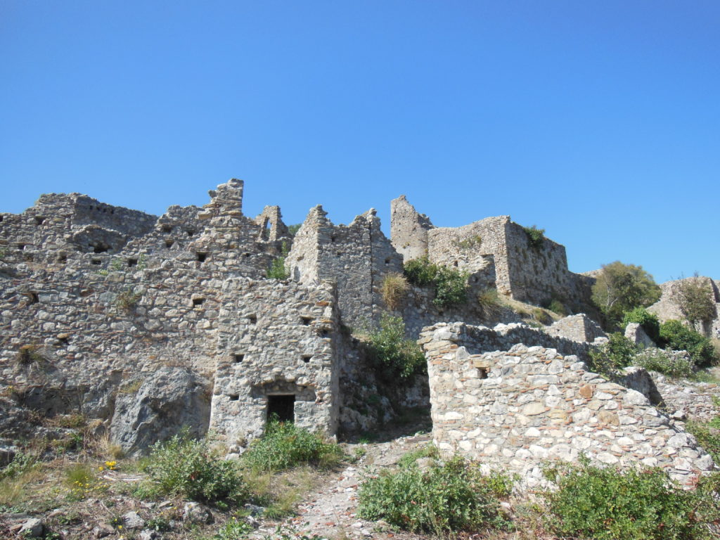 Even after it became capital of the Despotate of Morea (an appanage of the Byzantine state in the last century of its existence), Mystra was never a large city. But it was and is an impressive one. The citadel is perched on a mountain spur, hundreds of feet above the Laconian plain. Two turreted wall circuits descend the slope below. Amid weathered pines and mantling scrub, a few restored buildings stand out from a tangle of weathered ruins.