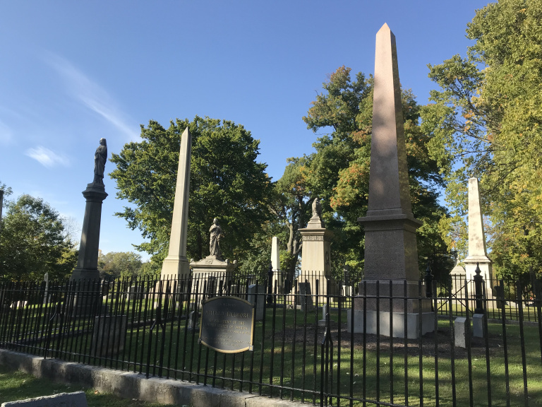 After circling the terminal and visiting a few other abandoned buildings in the vicinity, I proceeded to the Anchor Bar, birthplace of the buffalo wing (I ordered beef on weck). Then I cycled north to Forest Lawn cemetery, home (among other luminaries) to Rick “Super Freak” James and Millard “wiggity Whig” Fillmore. As those of you who have read this far know, I have something of an obsession with the tombs of obscure figures from American history. I needed to find the tomb of Fillmore. Obscure even in his own lifetime, Fillmore proved elusive in death; it took me nearly a half-hour to track down his modest granite obelisk.