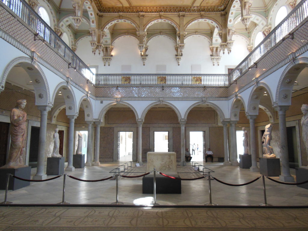 But the museum – which I entered, despite all my confusion, only a few minutes after its opening –was worth all of these inconveniences. It is often said that the Bardo holds the most important collection of Roman mosaics in the world. Whatever the truth of this claim, the collections are absolutely magnificent. The rooms of the museum (a former palace of the beys of Tunis) house a number of remarkable sculptures in marble and bronze, some well-carved sarcophagi, and good displays of Roman and Carthaginian pottery. But the mosaics displayed on the floors and walls of nearly every room are breathtaking. The first room on the main floor alone contains more mosaics of the highest quality than almost museum in the world, and the rest of the galleries were equally impressive.