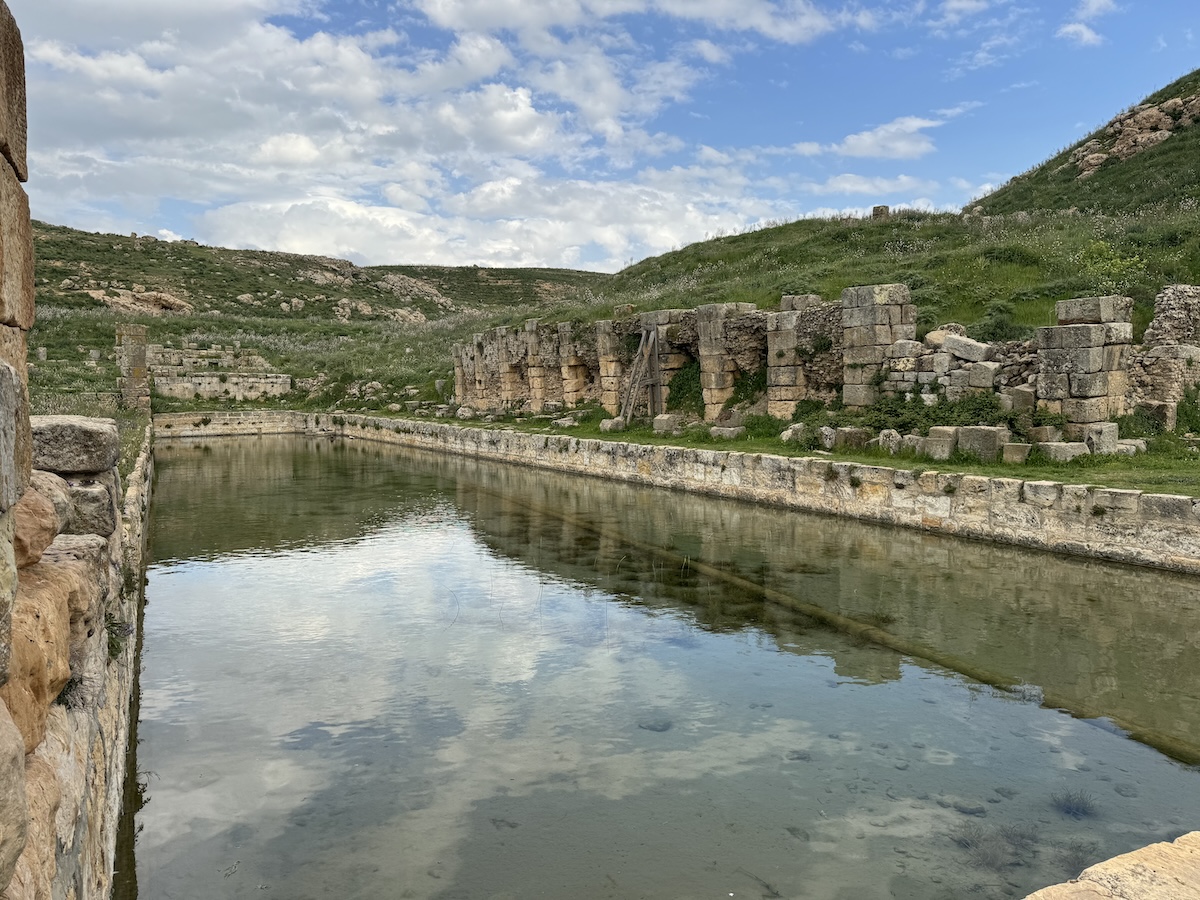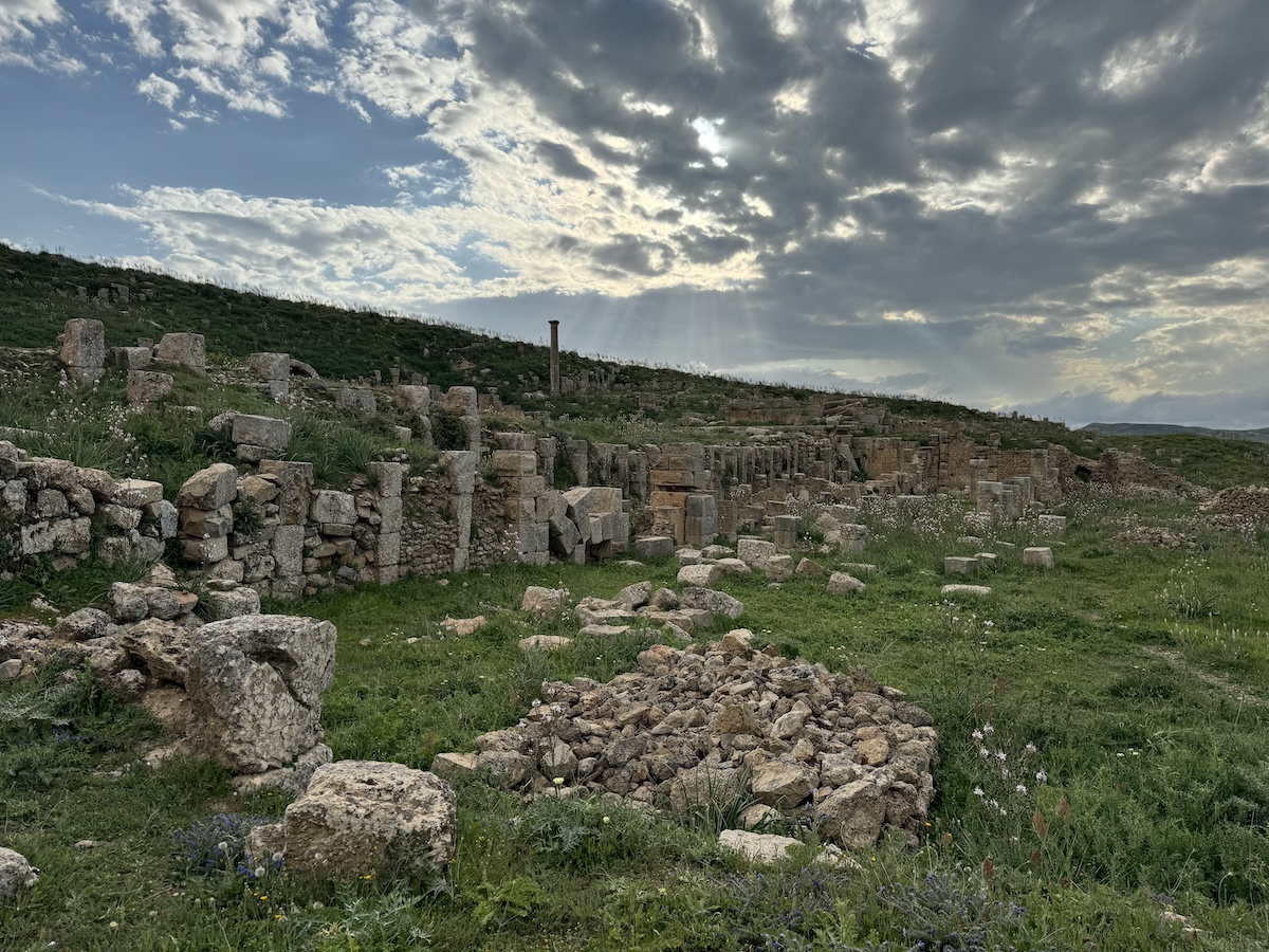 Perhaps the most evocative part of the site was the newer of the city’s two forums, which featured a broken monumental arch and massive bath complex. I lingered there after the rest of the group had left, shooting a video against the setting sun of the ruins and hills beyond. Sunset poured through empty doors and windows, filling the dead city with light. The wind had fallen, and my steps were quiet on the grass.