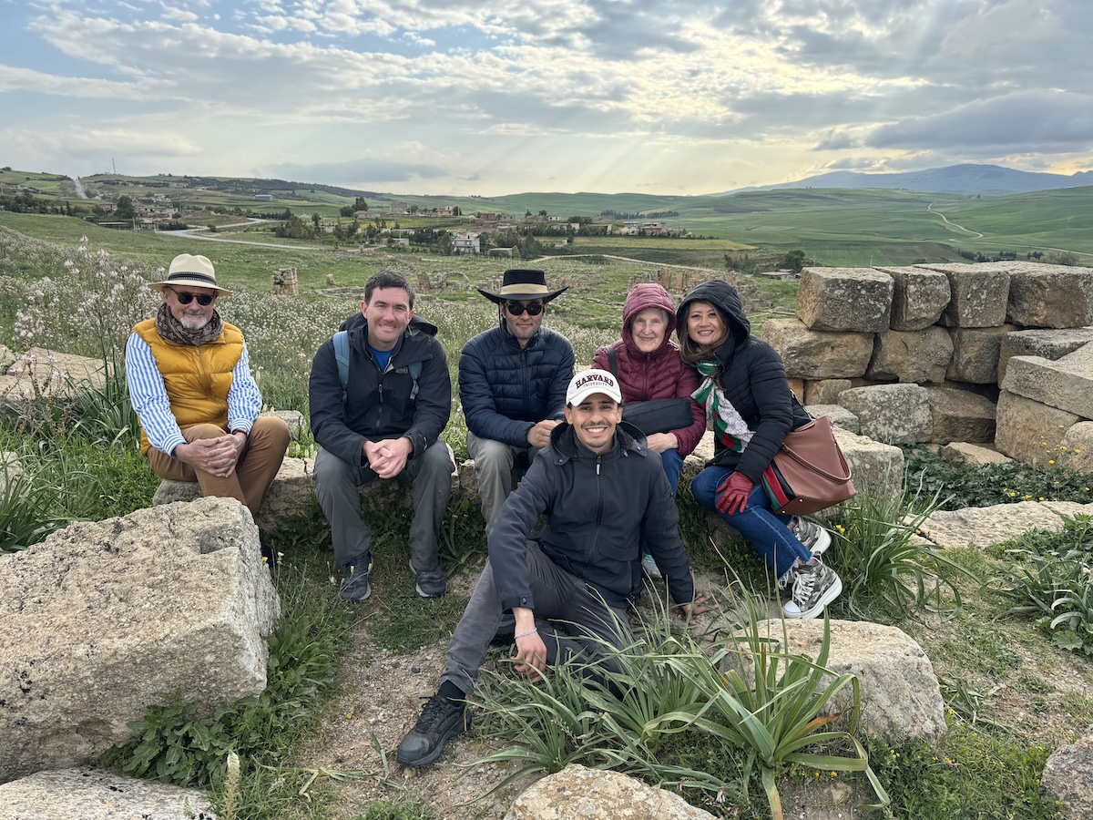Near the site entrance, we paused next to two elaborate seaside villas, still protected by a half-buried sea wall. (Thanks to silting, the coast is now nearly a mile away.) We stopped again in a large late antique church believed, without any definitive evidence, to have been the basilica in which St. Augustine preached. Perhaps the most evocative ruins were those of the forum, the largest in North Africa after that of Carthage itself. Sheep grazed beneath the colonnades. The marble pavement, almost intact, still bore the proud inscription of the benefactor who paid for its installation.