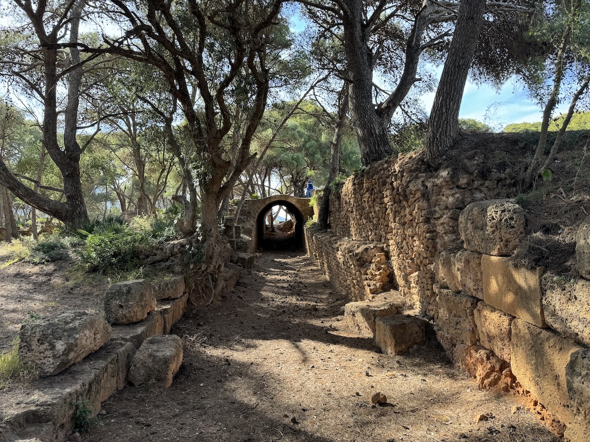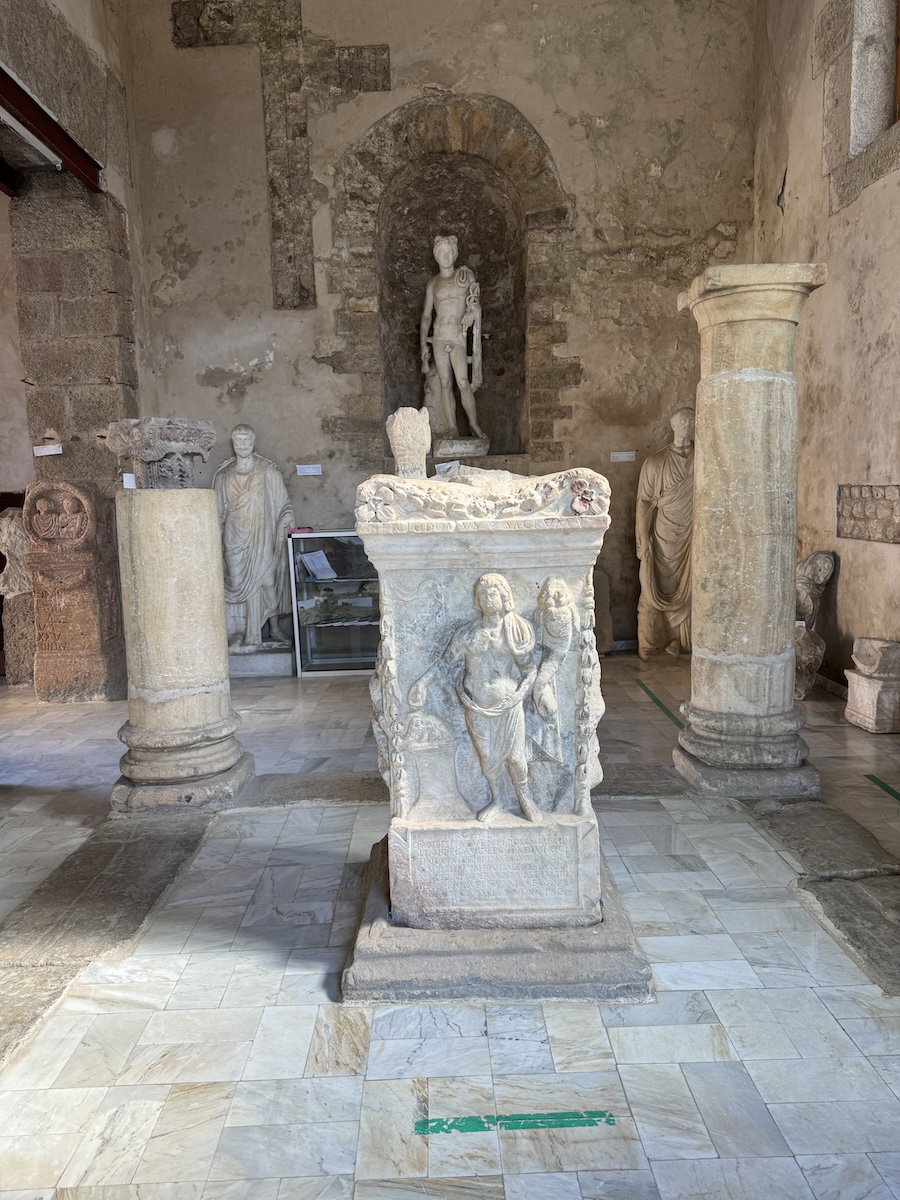 We walked down to the coast, where a stiff wind was driving waves onto the shore and clouds of dust down the paths. The site was crowded with families, strolling along the ancient streets as their children sprinted up and down the colonnades. We explored a series of buildings – the forum, a Christian basilica, a large villa – but everything seemed to blend into the background of fluttering olive leaves and hazy hills. Maybe I was just tired.