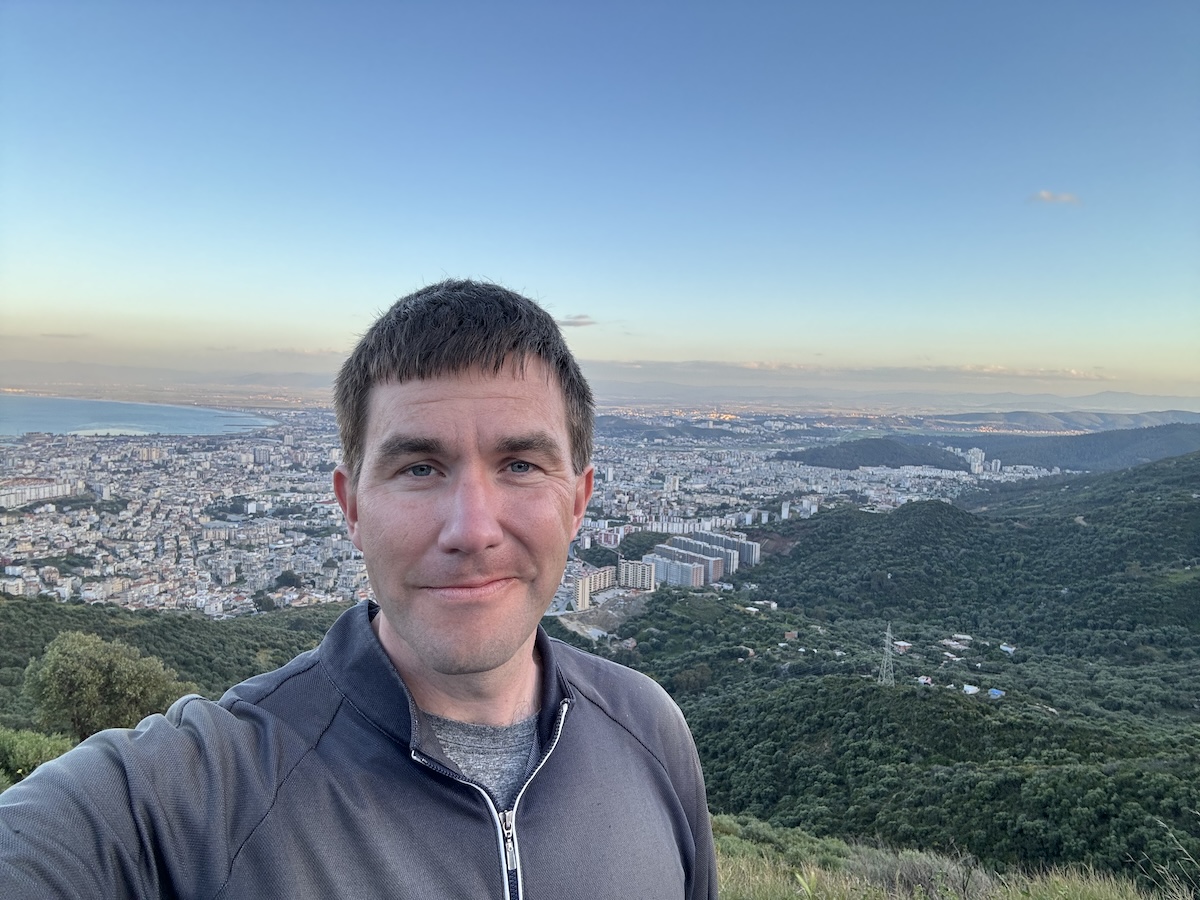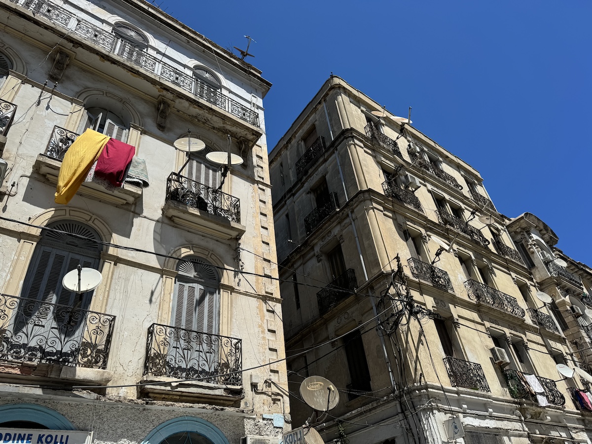Walking back to the van beneath rustling olive trees, we drove to a lighthouse with sweeping views of Annaba and the sea. The water was a brilliant Aegean turquoise. Then, on to the city center. Rochdi had been perhaps unwisely candid about the crime rate in Annaba – “they stab people here, and rub the knives with garlic to make the cuts scar” – but we encountered no trouble as we walked the twisting streets of the medieval center. We stopped in a tenth-century mosque with dozens of columns from the ruins of Hippo, then continued into the French colonial district, the grand neoclassical buildings sprouting satellite dishes and bird nests of power lines.