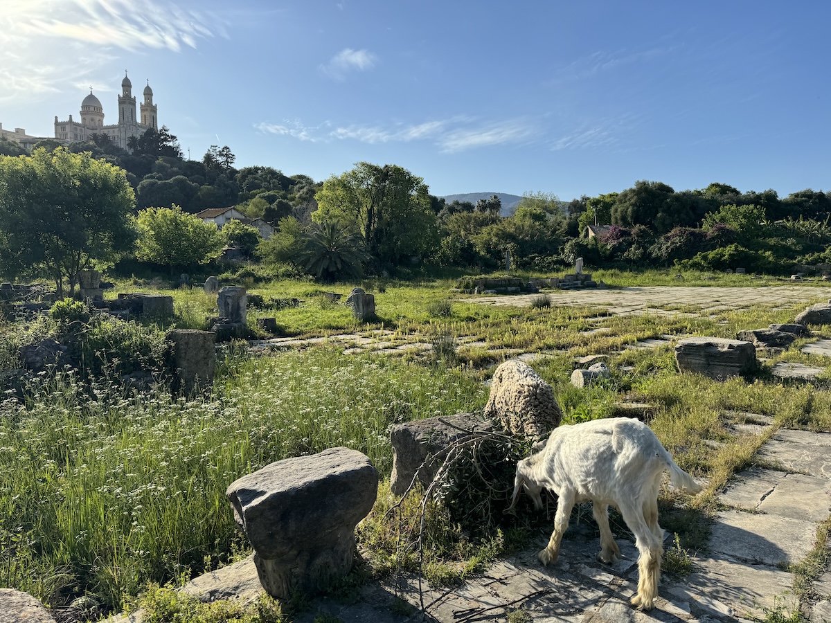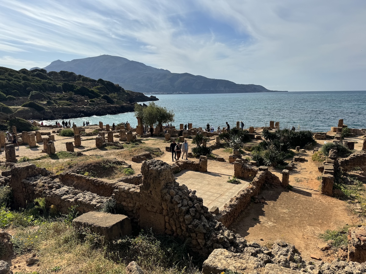 Our final site was Tipasa. While waiting for a table at the restaurant, we visited the small museum, dominated by a mosaic showing a captive Berber family. Lunch was seafood – steaming plates of delicious-looking fish and shrimp that I was too nauseous to eat. When we continued to the ruins, we found that – despite limited work by the French – most of the city remained unexcavated. Overgrown olive groves blanketed the site.