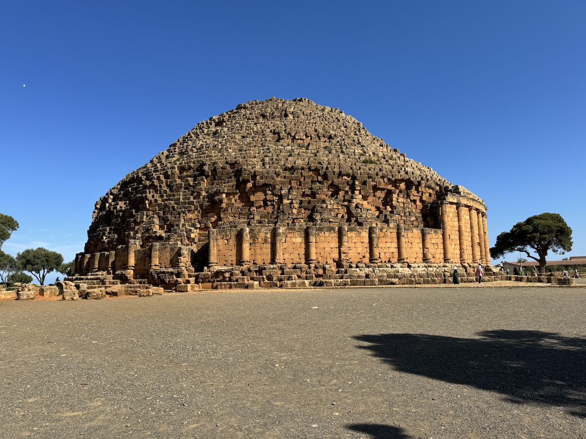 Our first destination was the Royal Mausoleum of Mauritania. Essentially a plus-sized version of the Medrecen, this seems to have been the tomb of Juba II, the Romanized client king who governed what are now western Algeria and coastal Morocco for Augustus. The monument’s scale was impressive, though the effect was somewhat compromised by the arrival of a large group of grade school students.