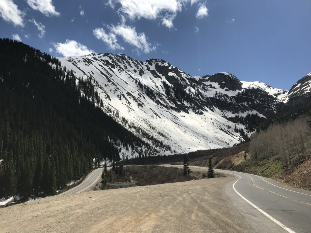 I continued through the picturesque mining town of Ouray (“America’s Switzerland”), and up the Million Dollar Highway – named, supposedly, for the amount spent blasting every serpentine mile out of the rock.