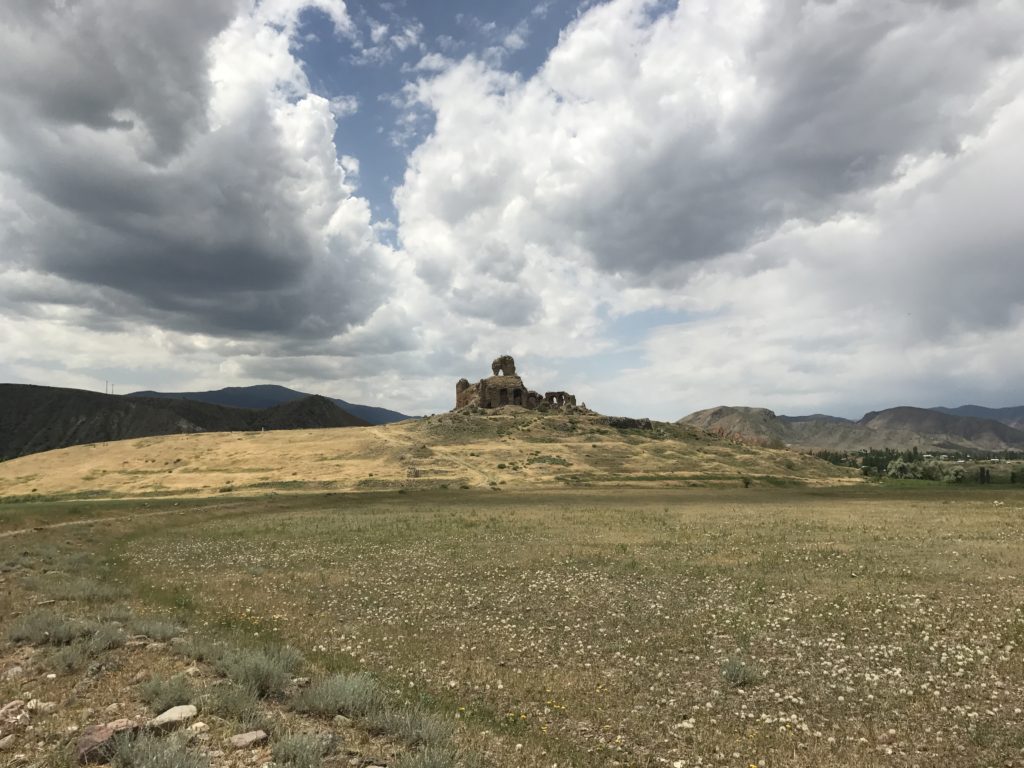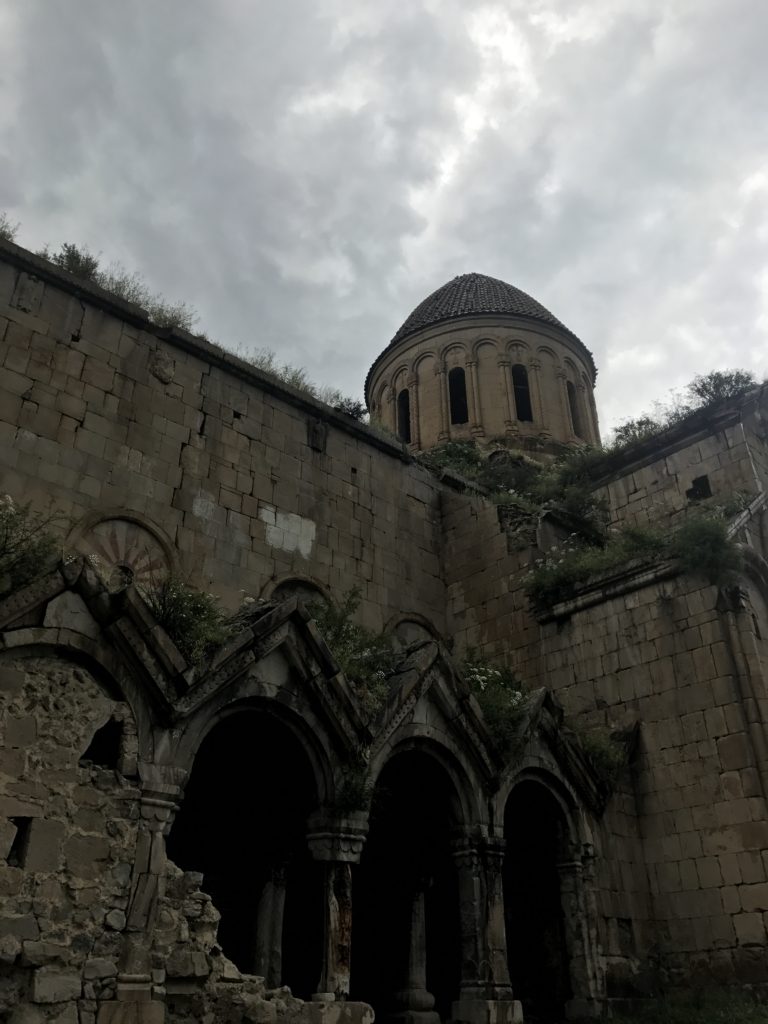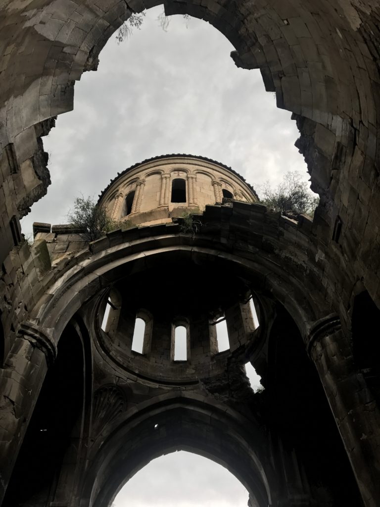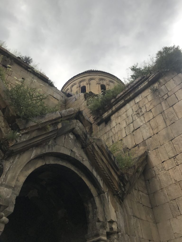 Continuing west through the mountains, I snaked my way up to the village clustered around Osk Vank, an imposing monastery church built by a medieval Georgian king. Just as I reached the ruins, a storm boiled over the adjacent ridge. The sky darkened; thunder rolled and echoed; and rain began to hiss on the grass growing in the roofless nave. Taking shelter under the partially-intact dome, I watched with amusement as three village boys, using the downpour as cover, furtively broke their Ramadan fast with a bag of Doritos.