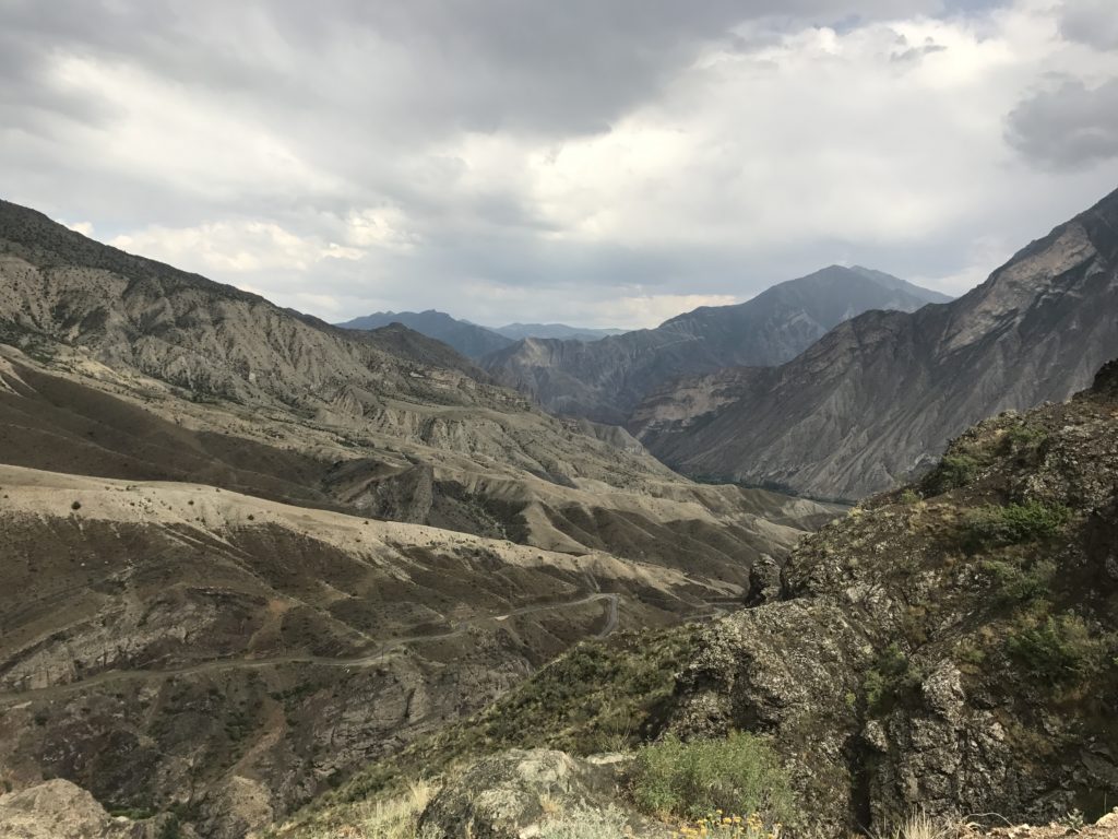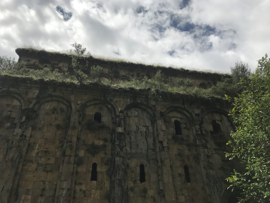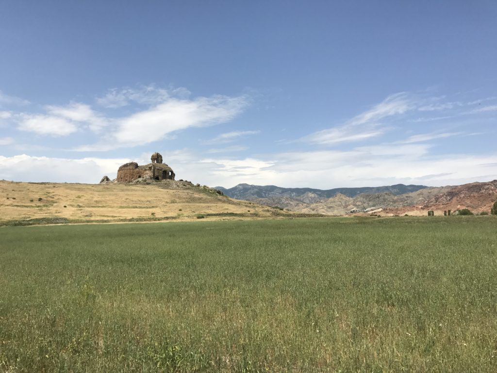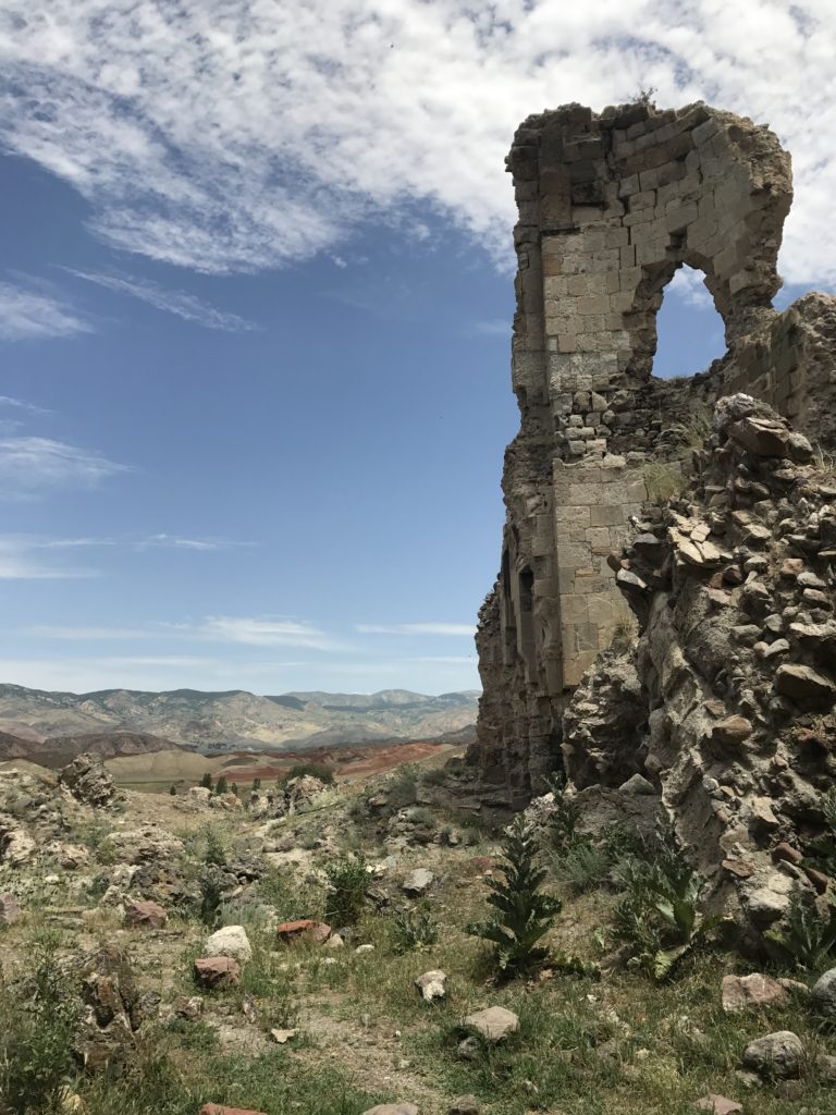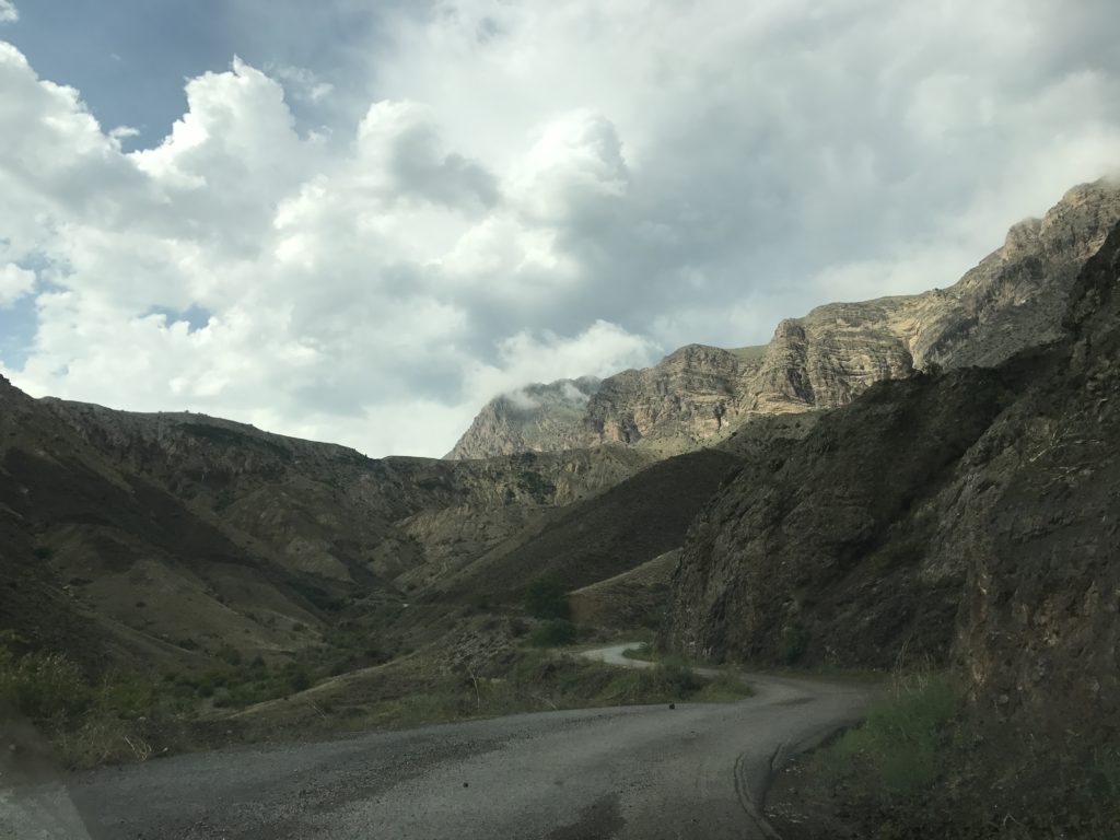 Continuing west through the mountains, I snaked my way up to the village clustered around Osk Vank, an imposing monastery church built by a medieval Georgian king. Just as I reached the ruins, a storm boiled over the adjacent ridge. The sky darkened; thunder rolled and echoed; and rain began to hiss on the grass growing in the roofless nave. Taking shelter under the partially-intact dome, I watched with amusement as three village boys, using the downpour as cover, furtively broke their Ramadan fast with a bag of Doritos.