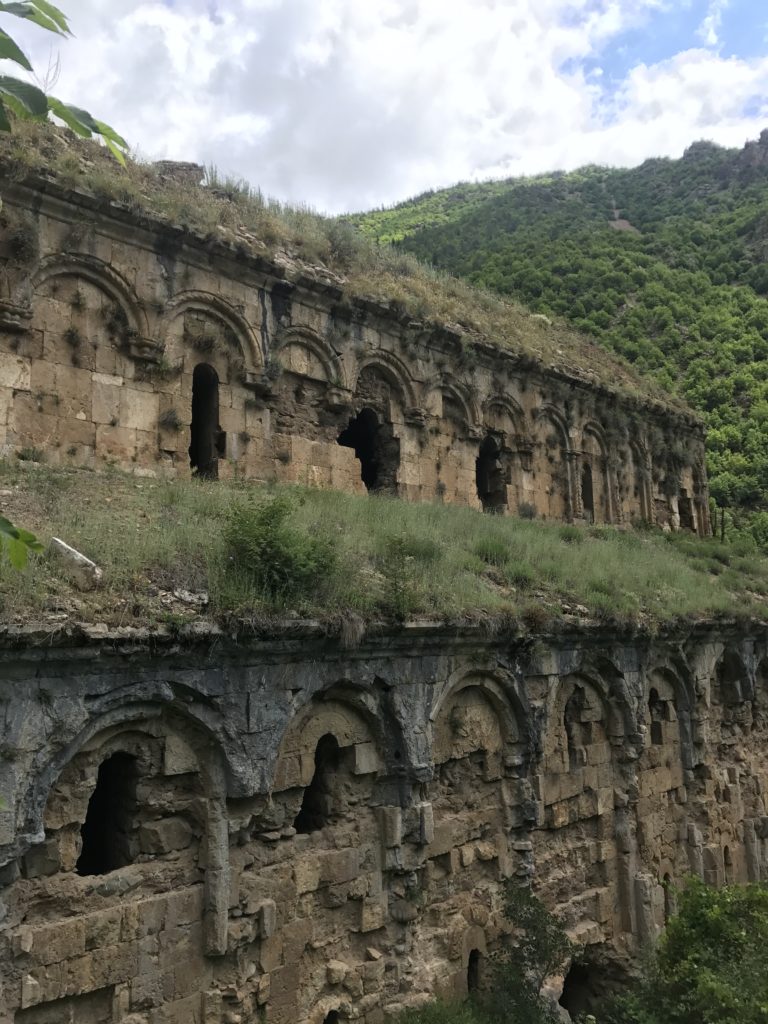 From the little village of Tekkale, I followed a heavily-rutted track to the ruined monastery of Dortkilise. After pushing my way through the romantically overgrown remains of the refectory and dormitories, I paused to admire the main church, whose stone roof was blanketed by thick layers of moss and waving grass. The interior, as usual, had suffered from the attention of treasure hunters. But here and there, above the reach of vandals, fragmentary frescoes brightened the damp walls.