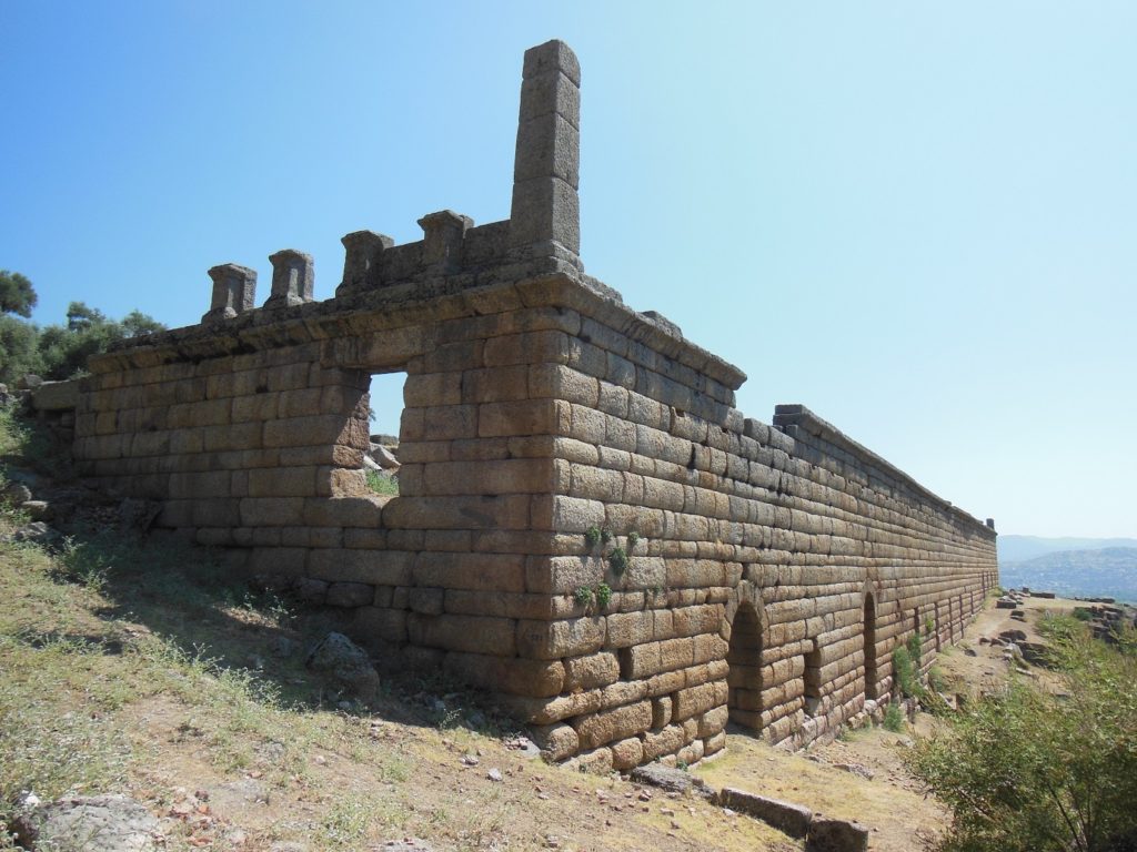 Alinda, set on two rocky hills above the town of Karpuzlu, was neither easy to find nor simple to interpret. I could see the ancient walls from the streets of the town, but there seemed no way to reach them. Finally stumbling upon a tiny sign pointing up an alley too narrow for my car, I parked in the main square, walked up a switchback lined by straggling cottages and farmyards, and finally found myself directly beneath the ancient city’s market hall.