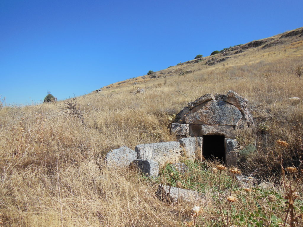 The main (north) necropolis lines one of the main access routes to the site, and so had plenty of other visitors. But it was spacious enough – well over a thousand distinct tombs, strung for more than a mile along the ancient highway – to handle a few tour groups and myself. Many of the larger tumuli and mausolea have been cleaned out and left open, allowing visitors to peer inside. The interior of a standard (wealthy) family tomb contained anywhere from one to three tiers of stone “couches,” on which the newly deceased were laid. Older bones were swept into an ossuary pit in the center to make room for new arrivals; a single ten by ten foot tomb might thus stay in use for centuries, and eventually contain upwards of a hundred individuals.