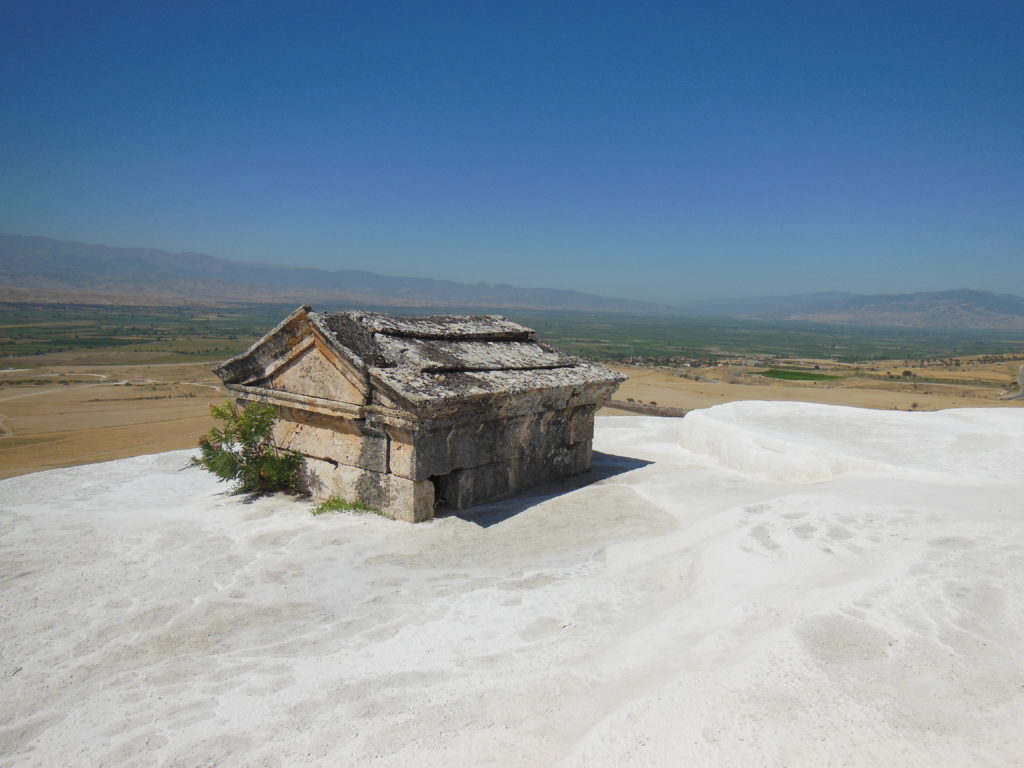 I had spent most of the night crushing mysterious bugs. They weren’t bedbugs; but since they were roughly the size and shape of a wood tick, and spattered my sheets with something that looked unpleasantly like blood when smashed, they weren’t exactly pleasant company either. When morning disclosed no new insects (the survivors having presumably taken up residence in my hair), I ate a quick breakfast and drove the few kilometers to Hierapolis. Though I knew I could not entirely avoid crowds – Pamukkale is one of Turkey’s premier attractions – I hoped to see the more important ruins before any tour groups arrived.