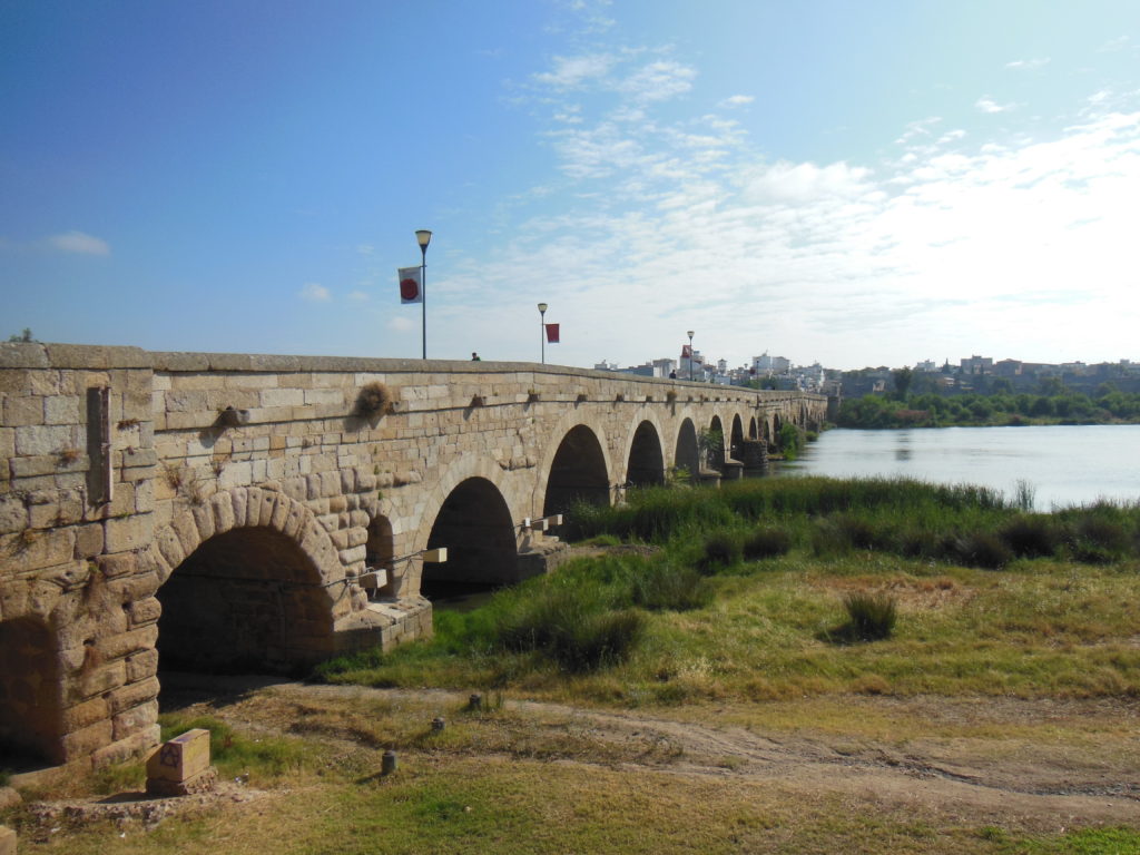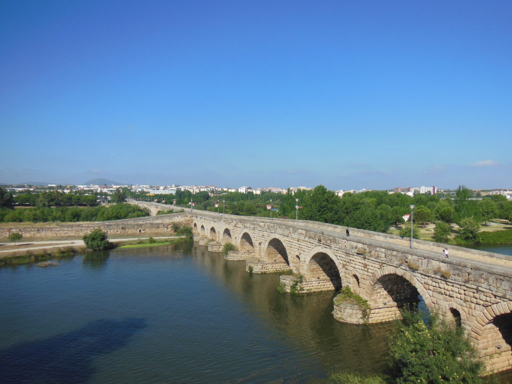 Within a few minutes of my arrival, I came into view of Merida’s most spectacular Roman survival, the half-mile long bridge over the Rio Guadiana. This remarkable structure, only pedestrianized twenty years ago, springs by sixty arches over a broad river valley. In the Roman era, and indeed for centuries after, it was a critical point in the war and commerce of west-central Spain; as late as 1808, two of its arches were broken to thwart Napoleon’s army of occupation.