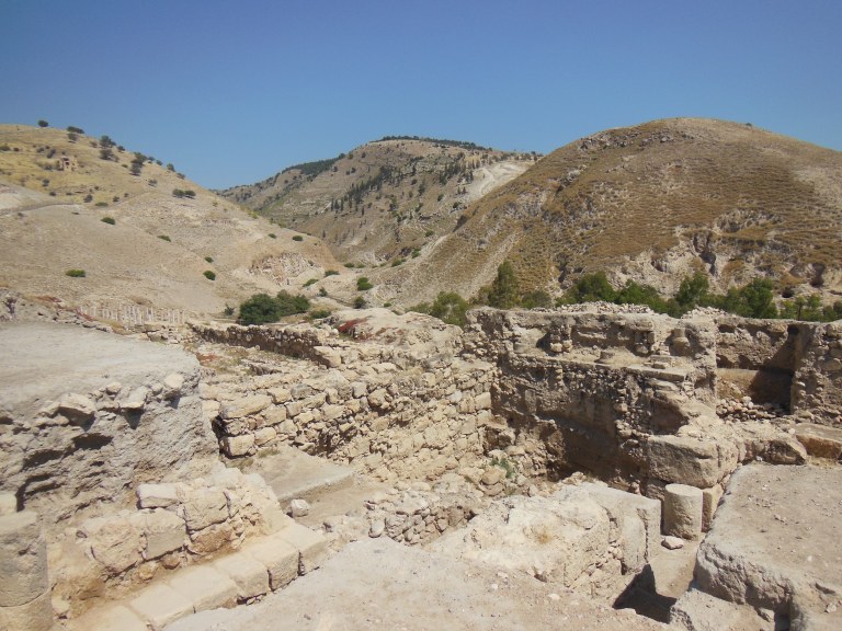 The universe having apparently had its fill of tormenting me for the afternoon, the rest of my time in Gadara passed without incident, and I could walk without serious pain by the time I returned to my car. My second destination was the Decapolis city of Pella, located in the Jordan River valley about forty kilometers south of Gadara. The drive (despite many military checkpoints) was relatively pleasant, and often quite scenic. As I gradually descended into the Jordan Valley, the temperature and humidity increased steadily, reaching hothouse levels by the time I reached the shadeless site of Pella.