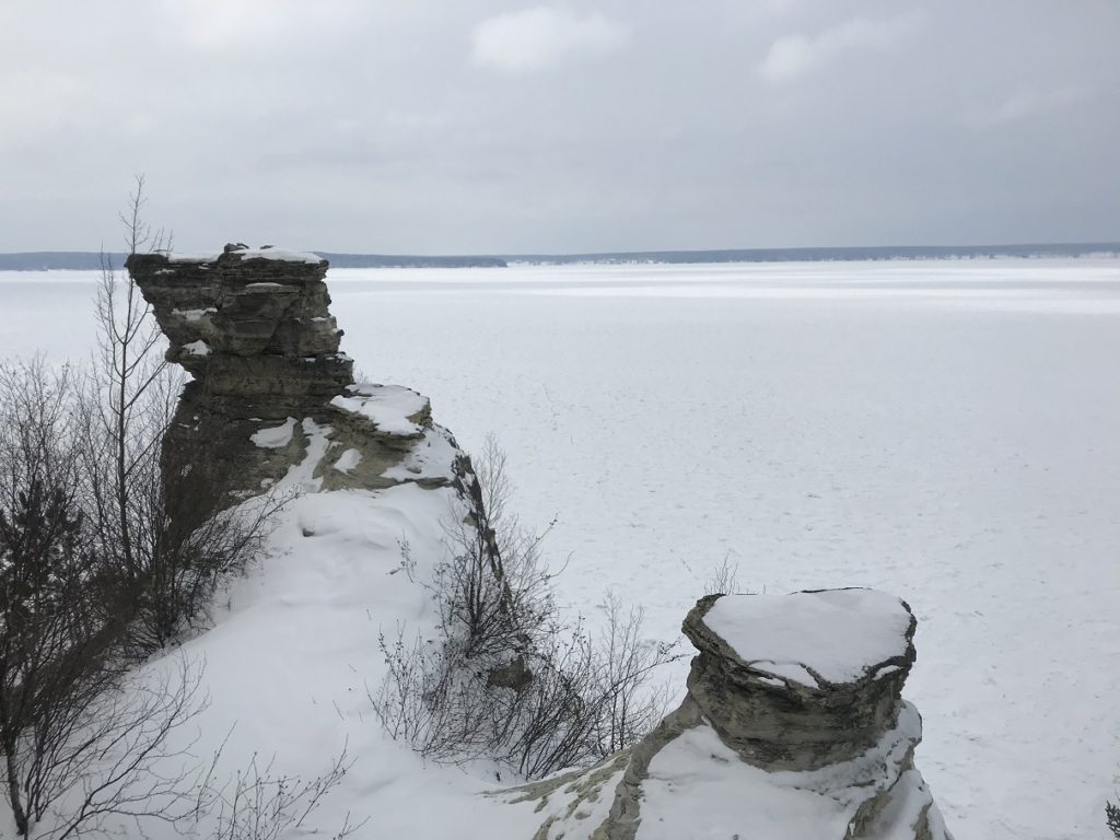 I finally emerged at Miners Castle, the most famous of Pictured Rocks’ sandstone formations. In the distance, around Grand Portal Point, ice-sheathed cliffs gleamed.
