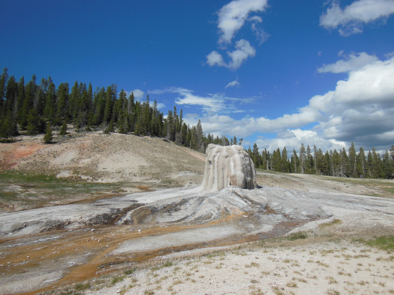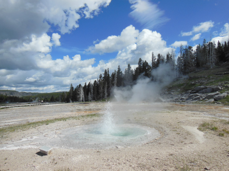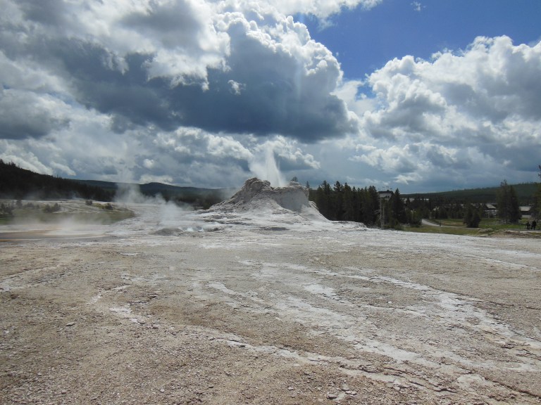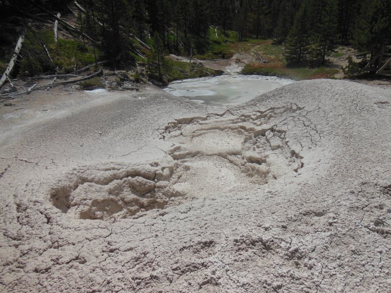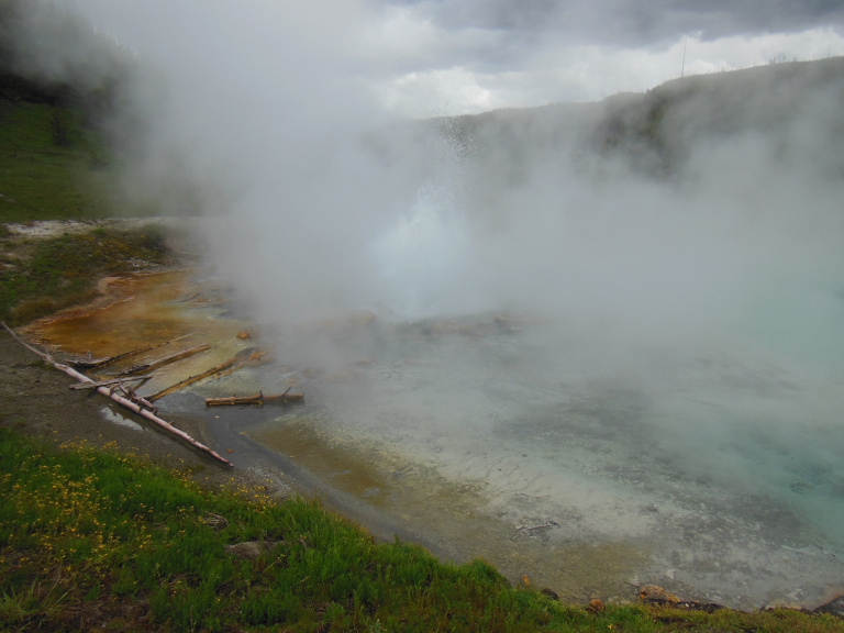 It wasn’t a bear. The geyser behind the cloud of steam had erupted, sending thousands of gallons of water crashing into the superheated pool around the vent. When I rounded the pool for a better look, I could see it still spouting, sending twenty-foot jets in every direction. A small thermal basin bubbled and hissed around me. I relaxed slightly – and then, while peering into a sputtering paint pot, felt the first drops of the second thunderstorm.