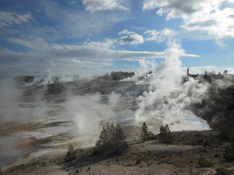 Norris Geyser Basin is the hottest and most volatile place in Yellowstone. Drumming over the sagging boardwalks, I could almost feel the magma of the caldera pushing upward, sending tendrils of fire through burning earth and sublimating water.