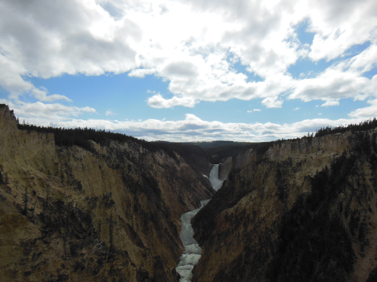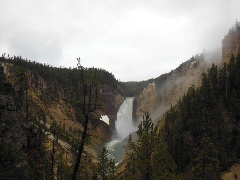 I did some necessary shopping in Canyon Village before retracing my outward journey from Bridge Bay. Along the way, I stopped to photograph the Lower Falls of the Yellowstone River, an undertaking that entailed elbowing my way through an immense herd of Chinese package tourists.