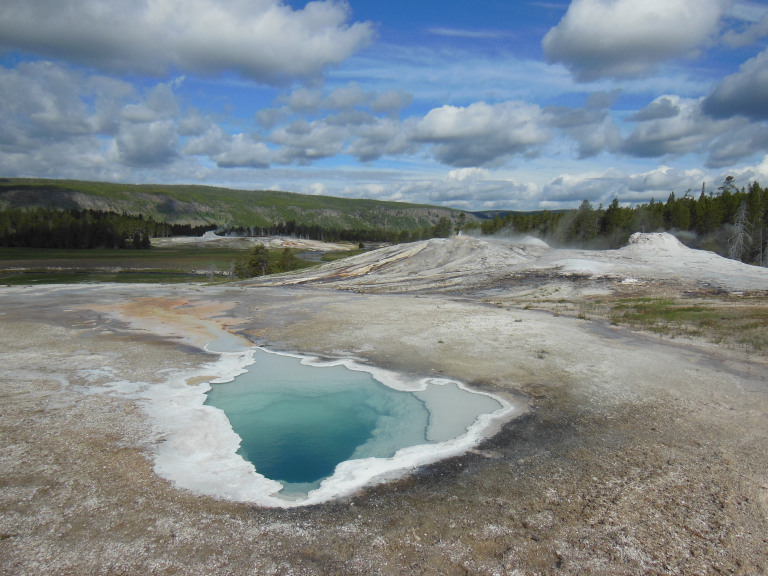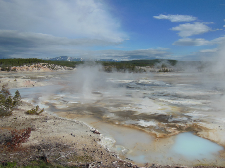 In Norris’ Back Basin, the highlight is Steamboat Geyser, the tallest active geyser on Earth. “Active,” however, is a relative term: the last eruption was two years ago. During my visit, the mighty crater was sputtering ineffectually, like a hero in senility.