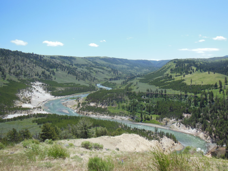 I hiked four miles through a meadow of sagebrush and tall grass. To the east rose the snowy Beartooth Mountains. West was the canyon of the Yellowstone, cut alternately through basalt lava flows and thermally-altered sedimentary rock. On the riverbank three hundred feet below, a few fumaroles sent up plumes of smoke, winging the wind with sulfur. It was the sort of unambitious walk that I seldom allow myself, and I enjoyed it accordingly.