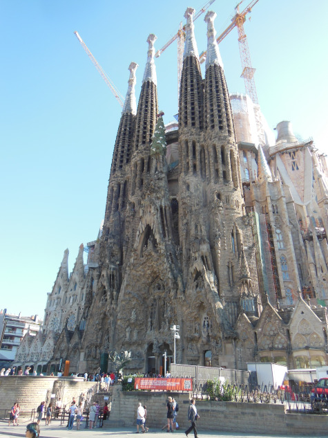 In the subsequent hour, walking around Gaudi’s massive (and still very unfinished) Sagrada Familia, I had ample opportunity to consider how setting contributes to an appreciation of art. Sagrada Familia is hemmed on its long sides by two busy streets and their adjoining buildings. Nowhere is it possible to get a good view of any one façade. But then I suppose medieval cathedrals were often equally integrated into the fabric of their cities.