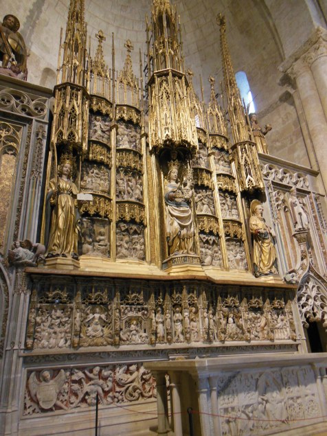 Fortunately, I spent the next two hours in a much cooler place. The cathedral of Tarragona was, as mentioned, built over the old imperial temple, at the city’s highest point. The exterior, shrouded by later construction, is relatively unimpressive. The interior, however, preserves a dazzling array of artistic and architectural treasures. Unlike its counterpart in Barcelona, moreover, it is virtually untouristed. With the aid of an excellent audioguide, I worked my way along the nave from chapel to chapel. As at Barcelona, these presented a variety of decorative styles. I particularly liked the Flamboyant (late) Gothic examples, which set a riot of decoration into ornately sculpted frames. The Baroque chapels exhibited a similar horror vacui, but compressed into more formal harmonies. The highlight was the magnificent Gothic high altar, decorated with scenes from the life of St. Thecla. Its forty feet of gold and alabaster, massively detailed but carefully balanced, dominated the entire church. The whole is a striking monument to the truly pan-European nature of International Gothic, since its making enlisted craftsmen and techniques from as far afield as northern France and the Low Countries.