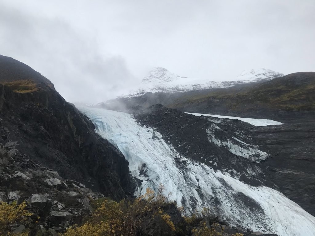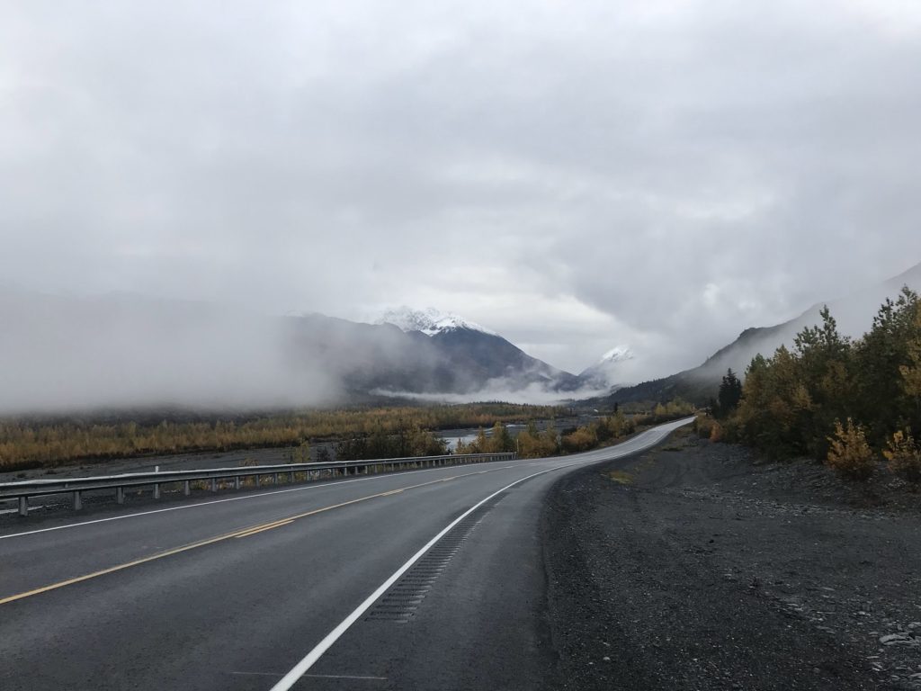 I headed back down the McCarthy road and followed a foggy highway to the Chugach Mountains. Still sore from two days of relentless elevation gain, I decided to settle for a short jaunt up the ridge overlooking Worthington Glacier.