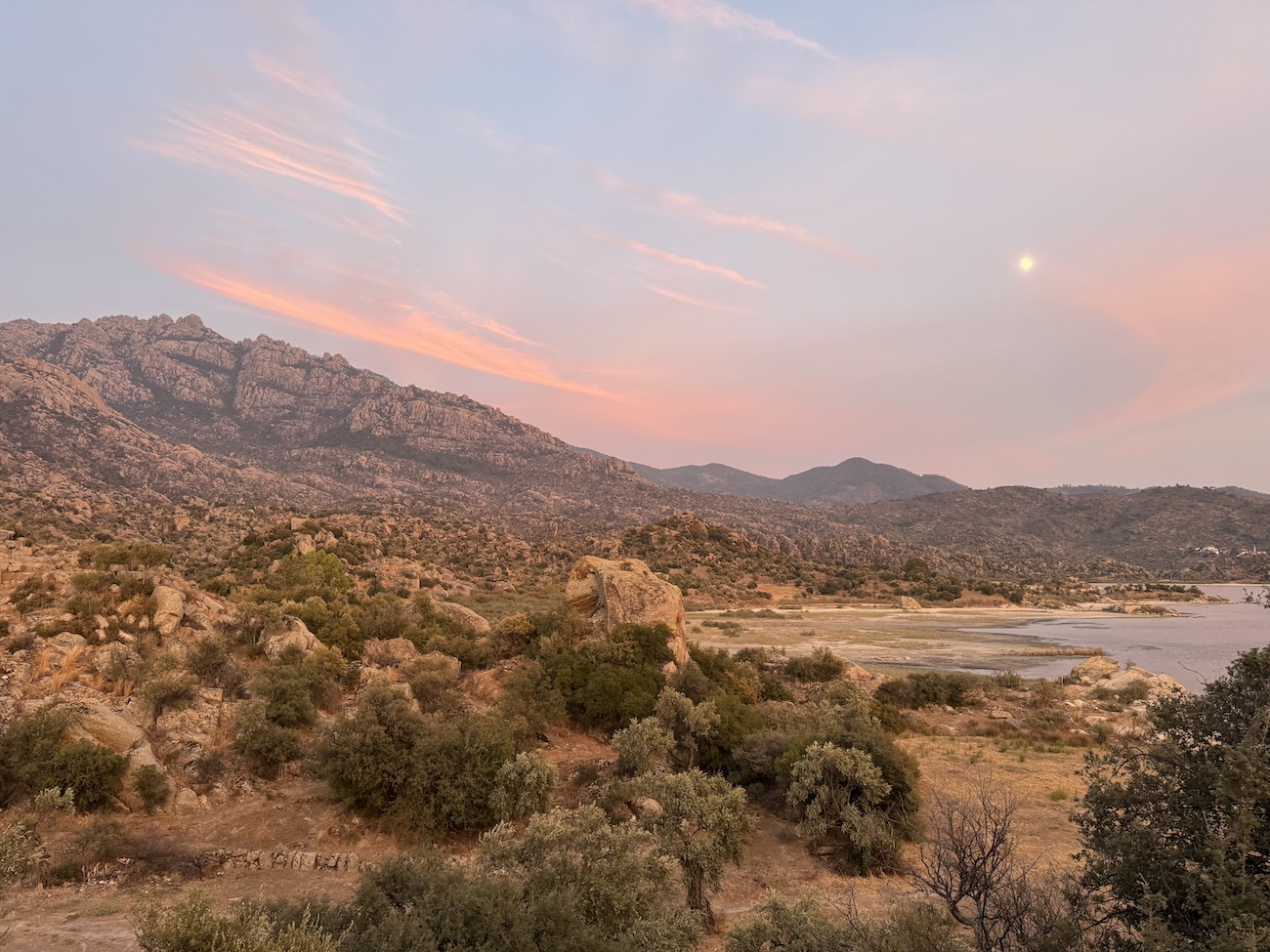 It was evening by the time I returned to Kapikiri, where a mercifully cool breeze was pouring off the lake. I walked up to the Temple of Athena again, and listened to the wind whistle over the ancient walls. As I picked my way through boulder fields to the ancient Carian necropolis outside town, a haloed three-quarter moon rose over the mountain, and rosy wisps of cloud filled the sky over the lake.