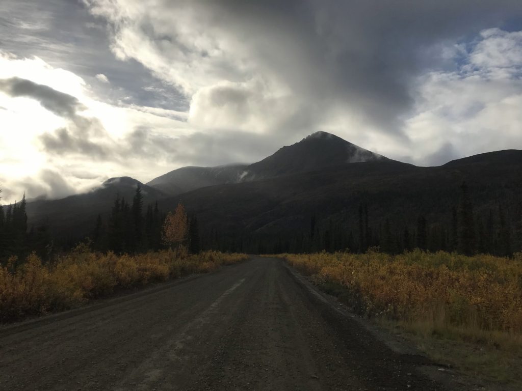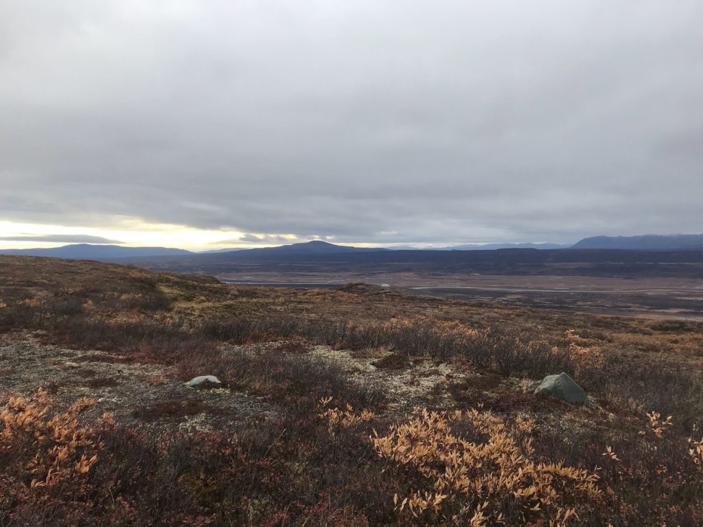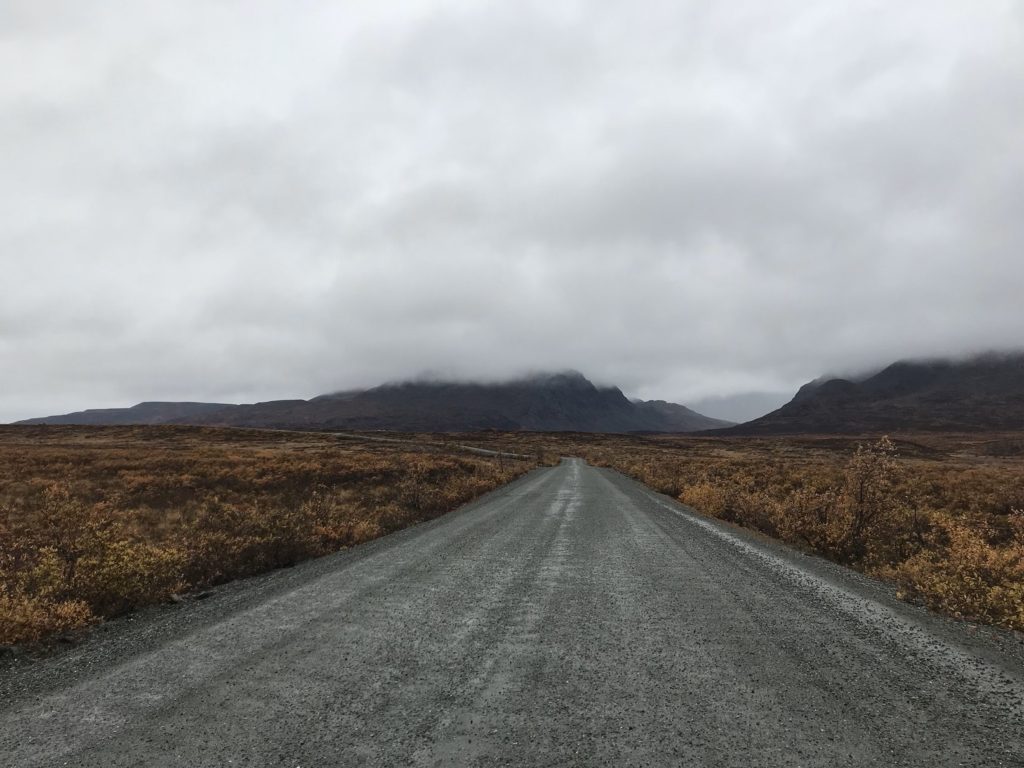 The tundra, bleak beneath a turgid sea of clouds, suited the melancholy weather. I drove up the highway’s highest point, and took a short hike along a ridgeline. Within a mile, however, that relentless wind chased me back to my car.