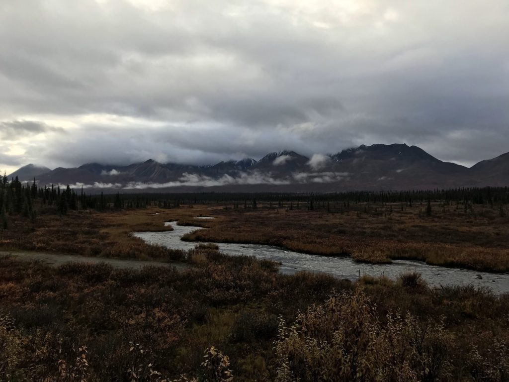 As I approached the Alaska Range, huge raindrops began to explode against my windshield. Within moments, I was engulfed by a wall of water. Between my wiper blades, I could just make out the looming walls of mountain pass. Then the cliffs slumped into hills, the downpour slackened to a drizzle, and I found myself at the eastern end of the Denali Highway.