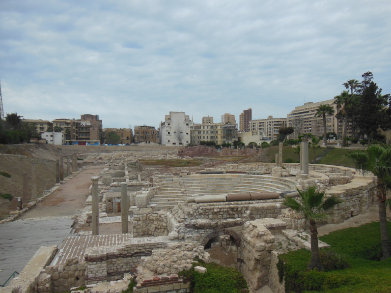 After paying my driver a reasonable portion of the exorbitant fare he demanded, I closed my tour of Roman Alexandria with the so-called Kom el-Dikka (mound of rubble), an excavated Late Antique neighborhood centered on a well-preserved odeon and a villa with beautiful mosaic floors.