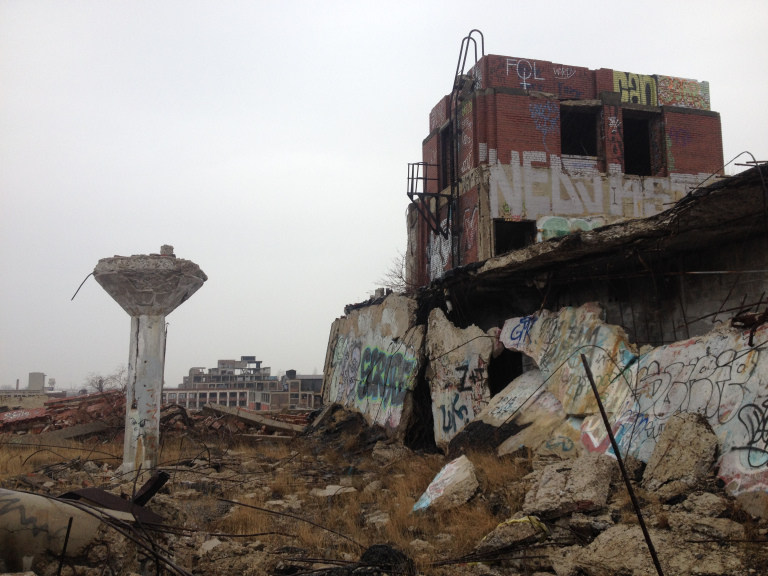 I remember with particular vividness a rainy morning in early March a few years ago, when I happened to be riding past the Packard Plant. On an impulse, I locked my bike to a convenient tree and jogged up to the fifth floor of the southernmost building in the complex. The rest of the nearly mile-long plant, gutted by scrappers and vandals, stretched away into the mist.