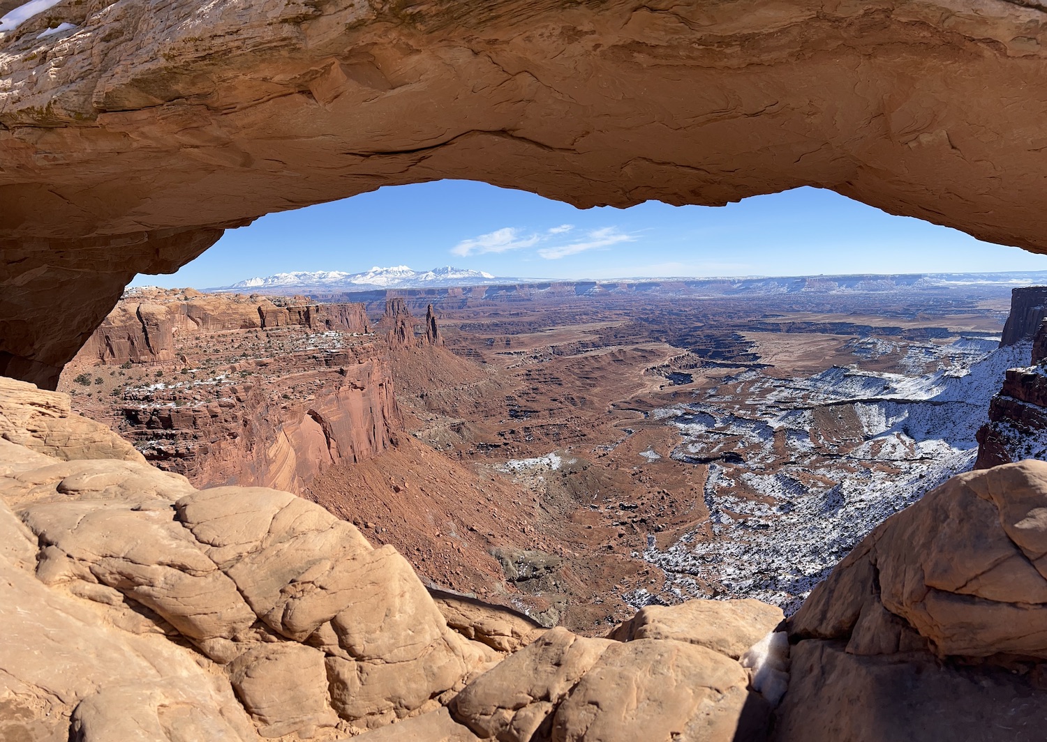 Of the other trails I hiked in Canyonlands, the clear highlight was Mesa Arch, a sandstone window framing the tormented geology of the river bottom and the La Sal range beyond. I ate my usual peanut butter sandwich at an overlook nearby, drinking in the view.