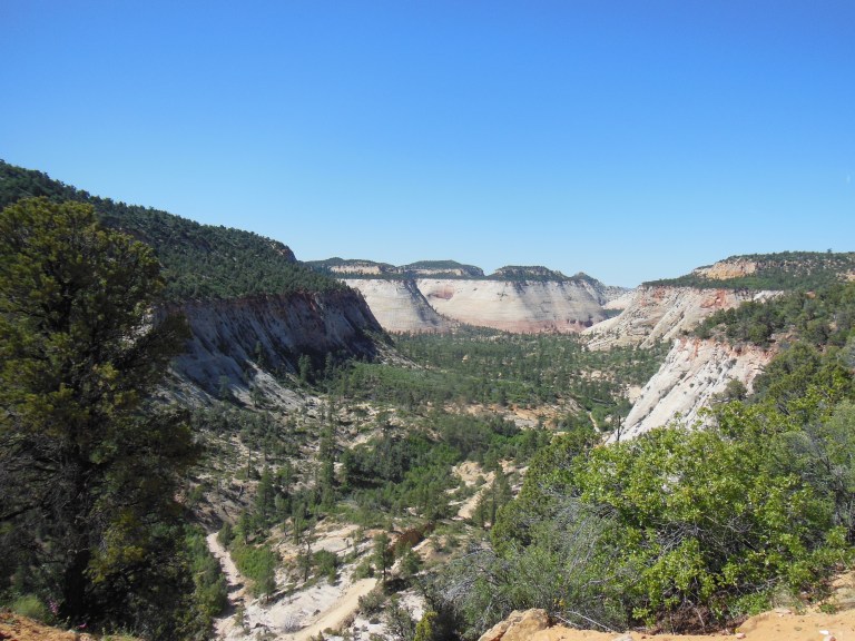 I intended to leave Zion this morning, deciding to stay only after a series of increasingly desperate phone calls revealed that no campsites were available for a hundred miles in every direction. Defeated, I reluctantly extended my tenure at the Ponderosa by one night. I was determined not to go into the Zion Valley on this crowning day of the Memorial Day Weekend, and resolved to find a moderate-length hike east or west of the crowded park center.