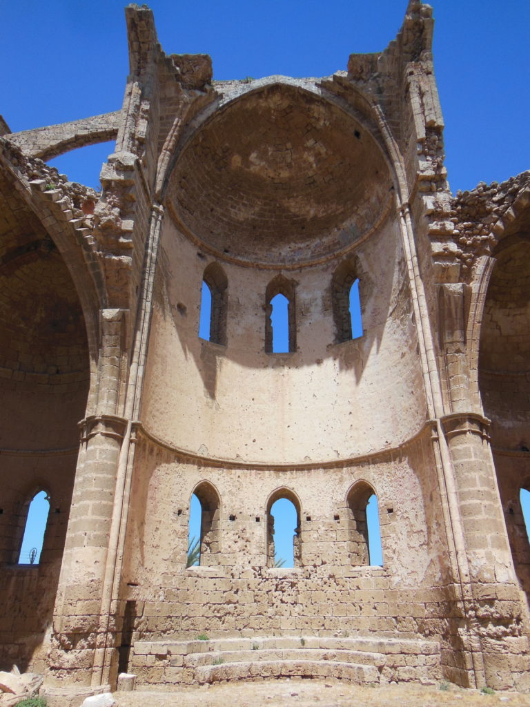 I spent most of the afternoon in the fascinating city of Famagusta, only ten kilometers south of Salamis. For three centuries, under Lusignan kings and then the Venetians, this was one of the great trading centers of the eastern Mediterranean. Easternmost outpost of Latin Christianity (once the Mamluks swept away the last remnants of Outremer), the city was adorned with a series of splendid Gothic churches. Between these houses of worship, Famagusta’s notoriously dissolute inhabitants debauched in splendid mansions, stirring from their revels only long enough to profit handsomely from one another. The monuments of piety and the products of commerce were alike embraced by a massive series of defenses, perfected by the Venetians in the mid-sixteenth century under the threat of Ottoman invasion. When the Turks came in 1572, the city held out for nine months, finally capitulating when its garrison was almost incapacitated by starvation. Despite promises of clemency, the Ottoman commander had his Venetian counterpart flayed alive in the city square, expelled all Christian inhabitants, and ordered the soaring Gothic churches to be converted to mosques. Famagusta languished under Turkish rule, shrinking to a tiny fraction of its former size; even today, much of the area within the Venetian walls remains empty. Though partially revived by the British, and the center of a burgeoning tourist district before the Turkish invasion of 1974, the old city of Famagusta has, like so much of northern Cyprus, a curiously neglected feel. The gaunt skeletons of Gothic churches loom over knots of dilapidated houses, and the massive Venetian ramparts are carpeted in dead grass.
