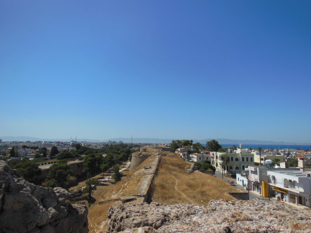 After an hour spent among the ruined churches in the outskirts of the old city, I climbed to the top of the massive wall, and walked about halfway around the circuit. Designed in an era conscious of the power of gunpowder, the defenses of Famagusta were to intended to both absorb and return cannon fire; massive ravelins (advanced defensive towers with cannon platforms) projected from every corner of the walls sloped to deflect all but the most concentrated and direct cannon fire. The views from atop the walls were predictably spectacular. The former cathedral dominated the old city, complemented by the broken reflections of a half-dozen Gothic ruins. South of the walls, the crumbling tower blocks of Varosha, a Greek resort suburb occupied by the Turks since 1974, presented a modern coda.