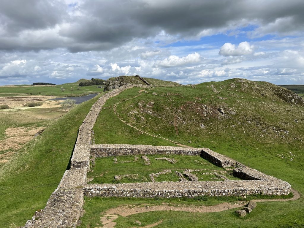Pictures of Hadrian’s Wall (turf-covered, snaking through a snowy infinity of hills) appear in every textbook of Roman history, and for years I’ve wanted to see the Empire’s northernmost frontier myself. Some visitors hike the whole length of the wall, visiting every fort along the way. I would have liked to do something similar, but since my schedule only allowed one day, I decided to focus on a few stretches of the wall and the two best-preserved forts.
