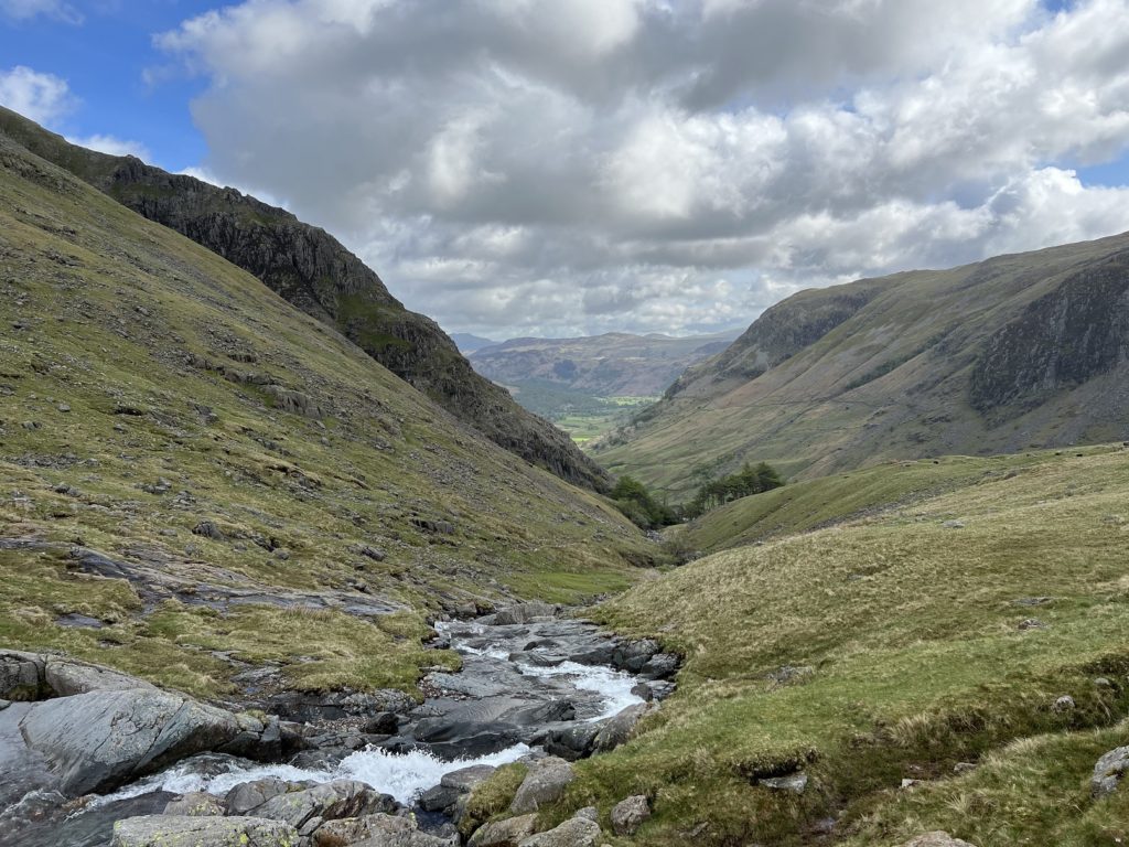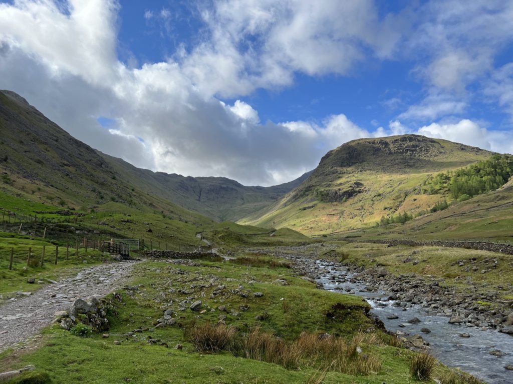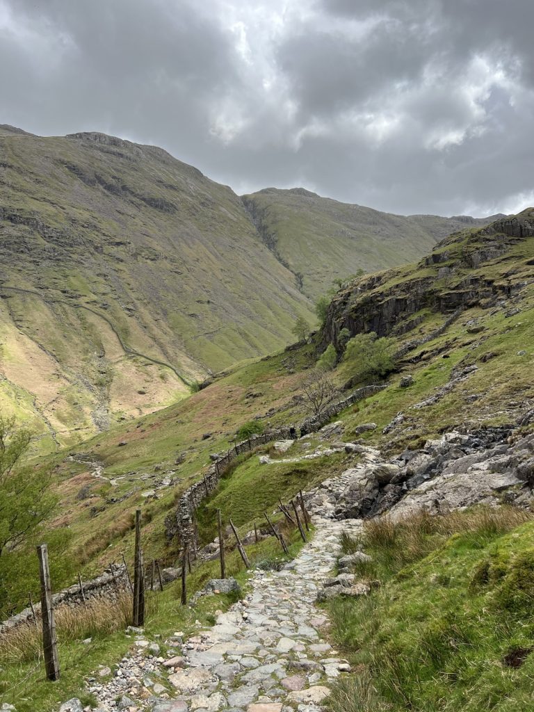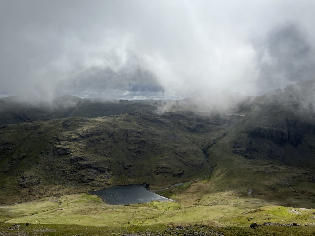 The sky over the Lake District was heavy with clouds, and it was raining when I started my hike up Scafell Pike, the highest peak in England. The sun emerged briefly, dappling the green slopes, before new clouds sagged over the peaks.
