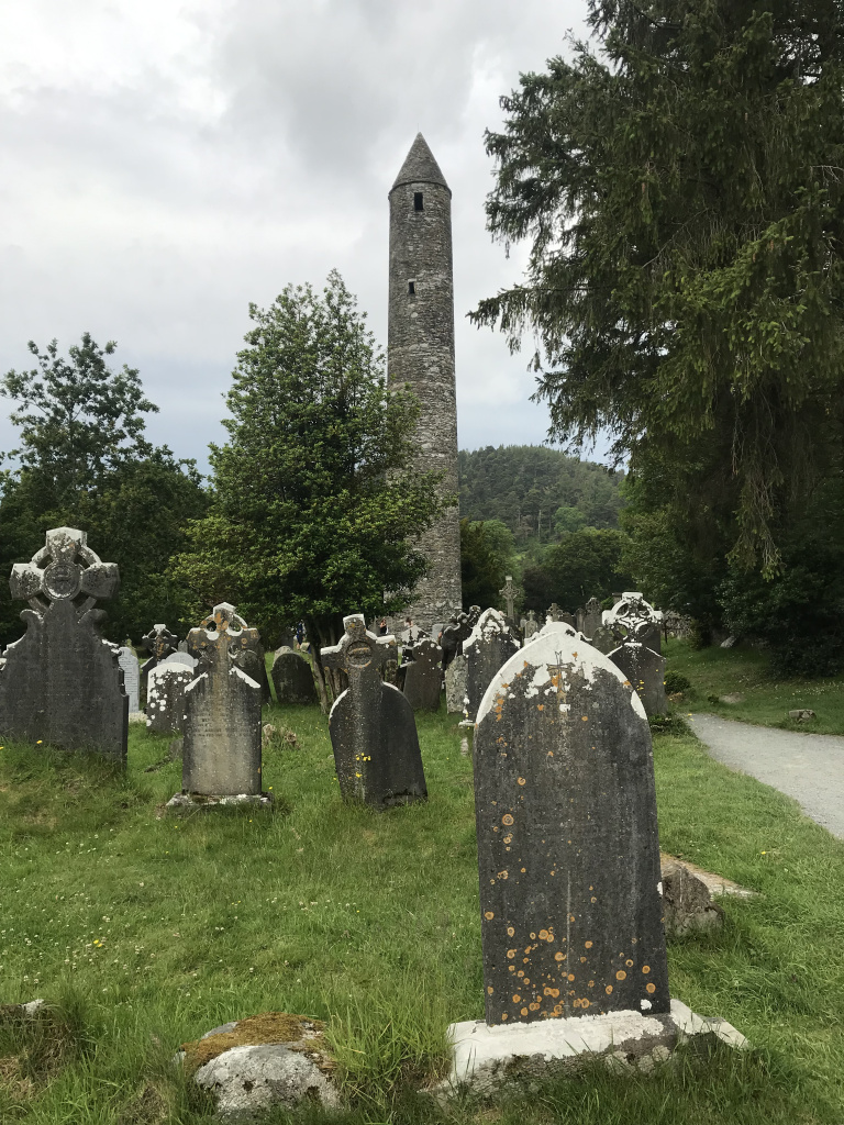 After breakfast at the hotel, we drove an hour south to Glendalough in the green Wicklow Mountains. There we met our guide, a cantankerous chain-smoker who provided a wealth of information about the medieval “monastic city” that made Glendalough famous throughout Christian Europe. As we soon discovered, however, his love of Glendalough was equaled by his hatred of the Spanish teenagers who swarmed the site shortly after our arrival. As he lectured about the site’s various chapels and famous bell tower, he glared at the gossiping students, whom he called “the bane of his existence.” He had no qualms about sharing his feelings. At one point, while trying to take a picture, he chased away twenty or thirty teens out of the foreground by waving his arms and telling them to “f-k off.”