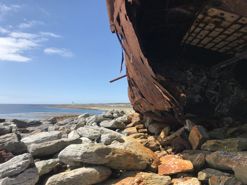On the island, my parents boarded a carriage while the rest of us rented bikes. Losing my siblings while investigating a ruined medieval chapel, I continued solo. Inisheer has only two real attractions. The more visually dramatic of these is the wreck of the Plassey, a large trawler than ran aground in 1960 and has been quietly rusting away since.