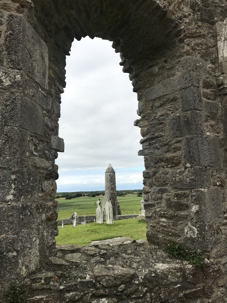 The drizzle had resumed, and the horizons were blurred by mist. Wiping the lens of my phone on my shirt, I walked to a corner of the roof overlooking the Boyne. Below, the fields around Trim glistened in their myriad shades of green. I took my picture. Then the guide called, and it was time to go.