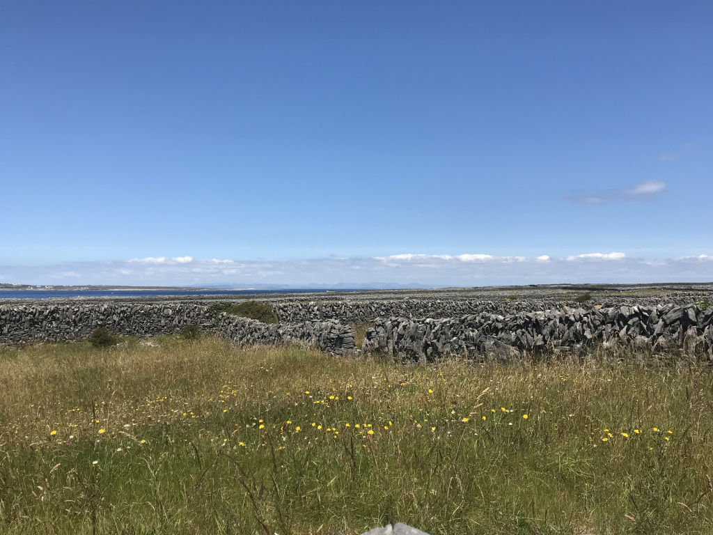 Inisheer’s other sight, a small castle, was too crowded to be interesting. The most enjoyable part of my ride was the final half-hour, during which I rode up and down the deserted stone-walled lanes on the island’s western end. The weather was warm, and clear enough to allow unobstructed views of Connemara to the north and the other Aran Islands to the west.