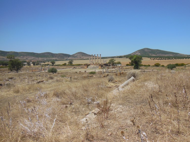 Desperately in need of a break, I decided to visit a site no more than an hour from Tunis (the original plan entailed eight hours on the bus). For once, almost everything went according to plan. I was, to be sure, nearly run down several times on my way to the bus station; but this seems to be pretty common around here.  After securing my ticket and boarding the right bus (always a matter of anxiety in a country where all destinations are marked in Arabic), I even managed to get off at the proper stop. Moreover, within minutes of my arrival in the dirty parking lot that serves as the bus station of El-Fahs – a town my guidebook aptly labels “perfectly miserable” – I had negotiated a cab to and from my destination, the Roman city of Thuburbo Maius, and even persuaded the driver that I had no need of his services as an impromptu archaeological guide (which would, naturally, have cost me extra). I can see why he wanted the money, as I had to hold the door of his cab shut as we drove.