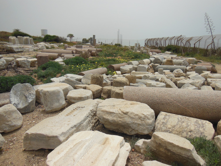 After a two hour charade at the car rental office (I was given a GPS that would not charge, and then no less than three faulty chargers), I finally left Jerusalem mid-morning, and drove for about an hour and a half to the underwhelming site of Caesarea. For virtually the entire Roman period, this was the largest, wealthiest, and most important city in Palestine, boasting up to 100,000 inhabitants and many spectacular buildings. Over centuries of abandonment and neglect, however, most of this grandeur was systematically dismantled; stones from Caesarea were used to build and rebuild Jaffa, Acre, and a host of smaller coastal cities. What remains is lamentably touristy. The medieval walls now shelter a whole district of bars and restaurants, and a modern dive center perches beside the remains of the Roman harbor. These amenities pander to the endless busloads of package tourists who spill through the gates, blunder along the marked paths, and then repair to the restaurants. I felt faintly ridiculous as I wove between tour groups, trying to snap photos of the rebuilt theater and a lackluster bathhouse. The site of probably the most interesting monument in Caesarea, the so-called “Promontory Palace,” residence of the procurators of Judaea, is marked only by a few re-erected columns and a wave-washed foundation hole.