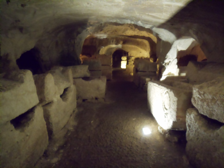 Fortunately, Beit Shearim, my second stop, was much more satisfying. Though never an important city like Caesarea, Beit Shearim was, with Tiberias, one of the most important centers of Jewish culture and scholarship in the centuries after the destruction of the Temple. The burial there of Judah HaNasi, a famous second-century rabbi, made the city something of a pilgrimage center, and the final destination of wealthy Jews from across the eastern Empire who wished to buried near the sage. Many of the tombs they carved into a rocky hillside below Beit Shearim have been excavated, and the two largest are open to visitors. One, the so-called Cave of Sarcophagi, is (as its name suggests) filled with nearly 100 stone coffins, many decorated in a distinctive style; I especially liked an example carved with representations of strange half-lion, half-fish creatures. The other is the family tomb of Judah HaNasi himself, the highlight of which is the rough hole in one corner in which the rabbi was laid. Unfortunately this, like all the other burials at Beit Shearim, was desecrated by tomb robbers centuries ago. Coming from the tourist mill of Caesarea, I was pleased to note that I shared the site with only two small groups, both composed of elderly Israelis.